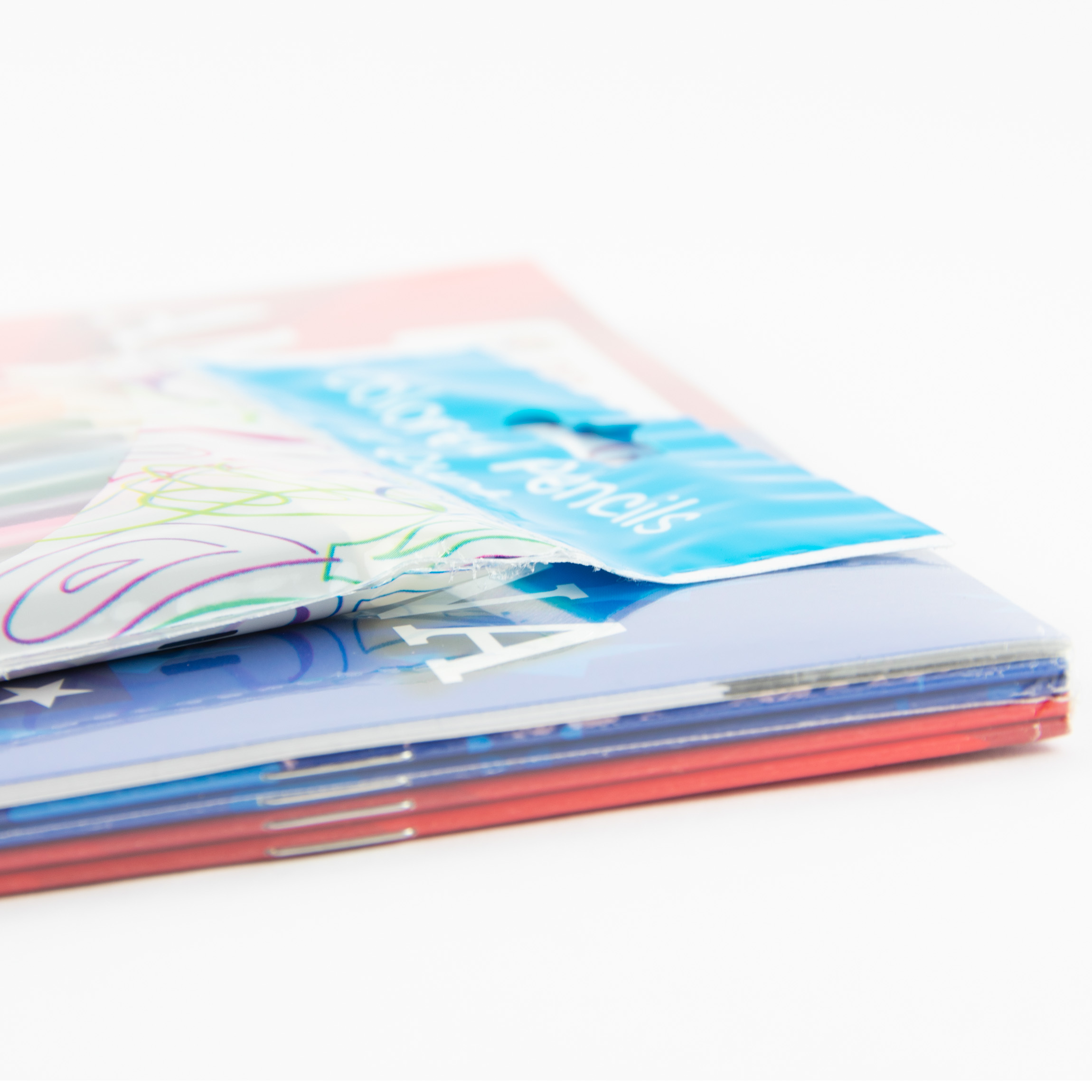 What's Included: 5 coloring books, 12 colored pencils