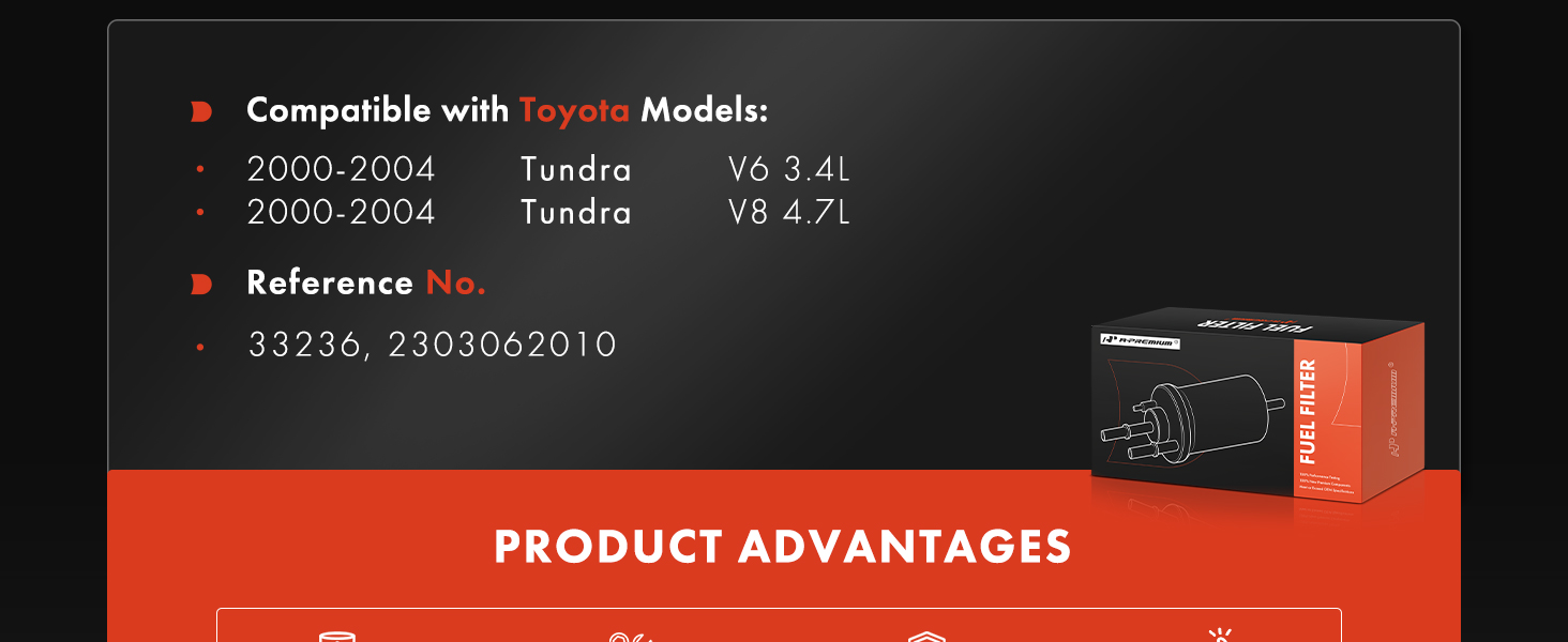 A-Premium Fuel Filter for Toyota Tundra 2000-2004 3.4L 4.7L Naturally Aspirated