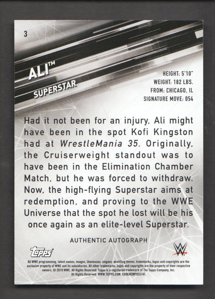 2019 Topps WWE SmackDown Live Wrestling Autograph Orange #3 Ali AUTO 41/50