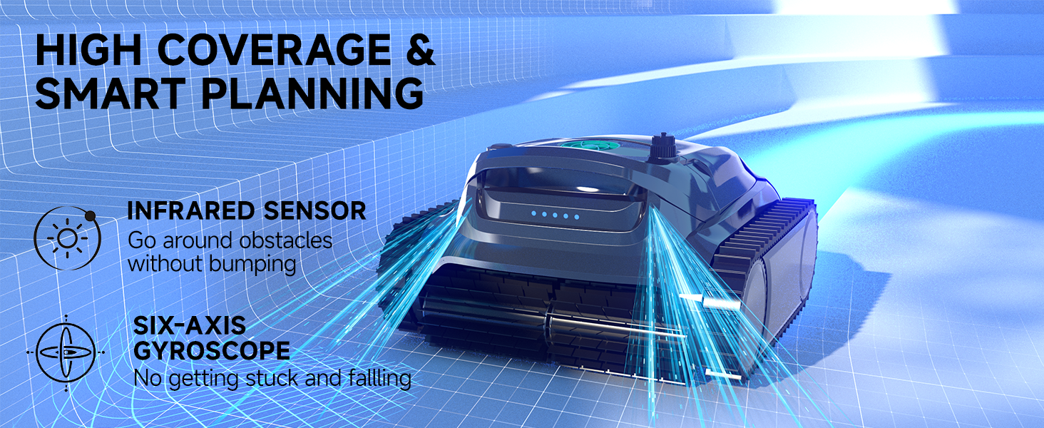 App Control & Wide Coverage: Schedule cleanings and control cleaning directions remotely via the app. 300-Minute Continuous Operation, Cleans pools up to 4,305 sq.ft on a single charge—perfect for large pools, resorts, and hotels.