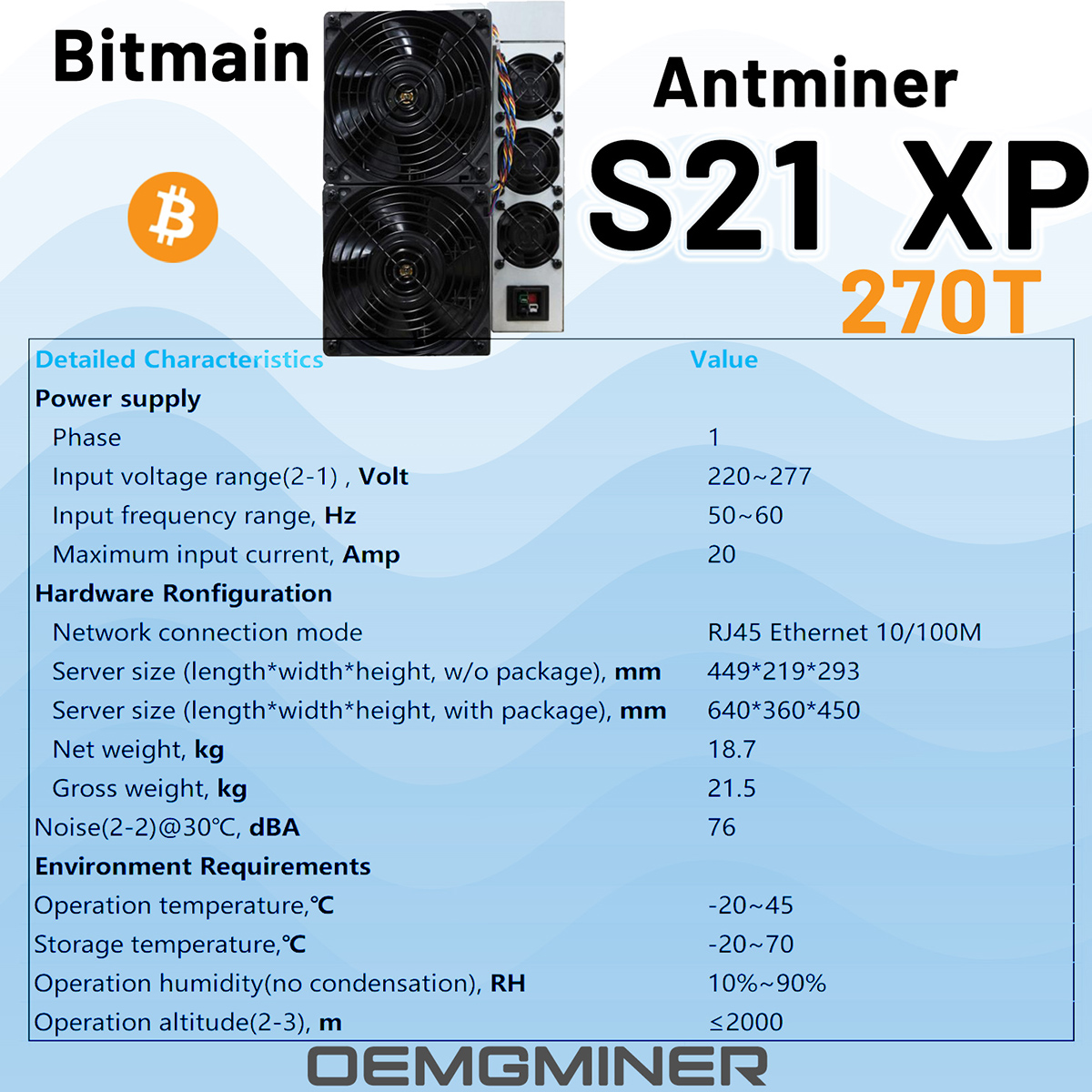 1x Brand New Bitmain Antminer S21 XP 270Th/s miner