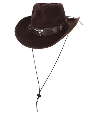 Includes: Brown Mock Leather Western Cowboy Hat with Ox Band