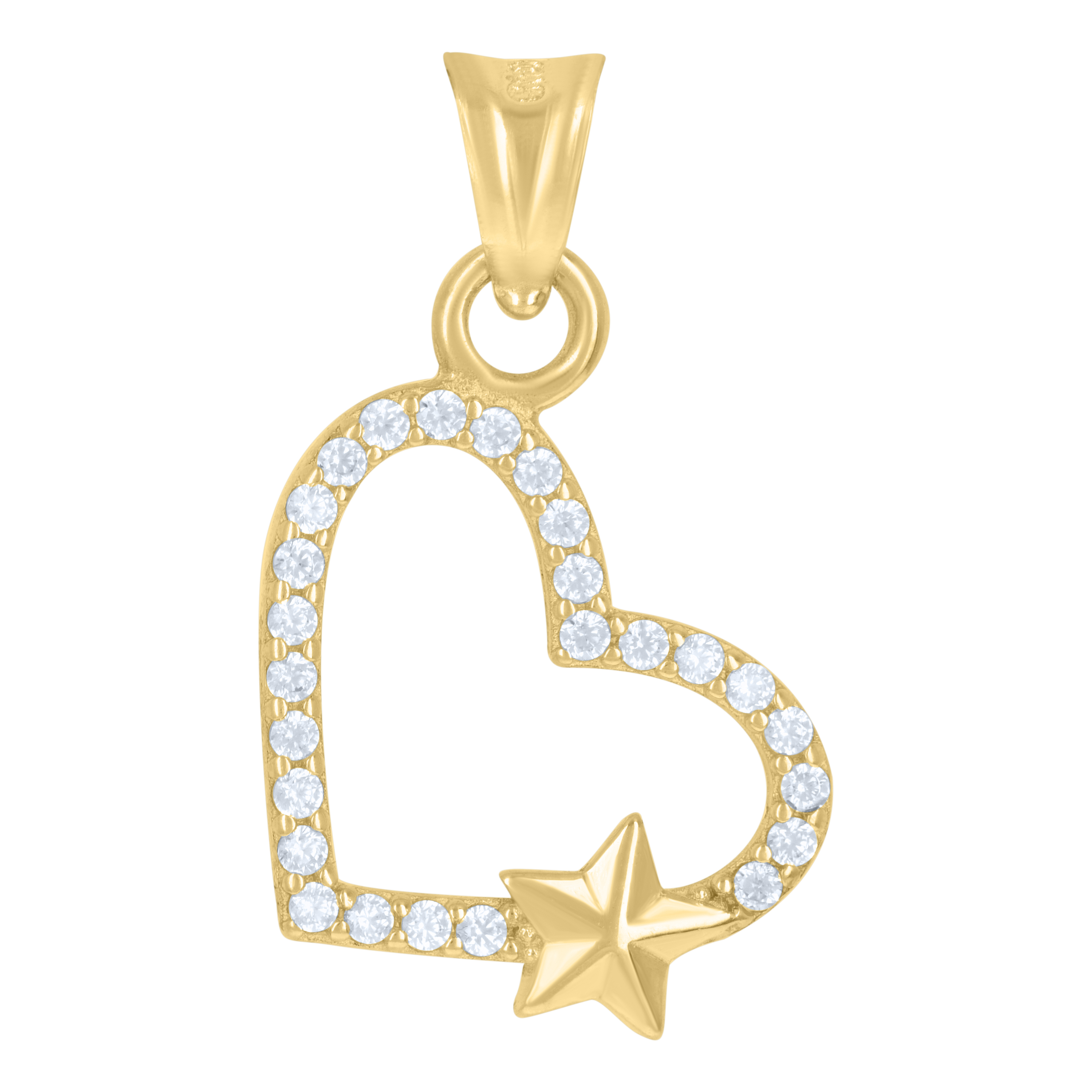 (0.9 gr. 10k Yellow Gold | Length: 0.95" (including the bail) | Width: 0.55" | 10k Yellow Gold Sideways Heart Frame w/ Star Pendant Statement Charm)