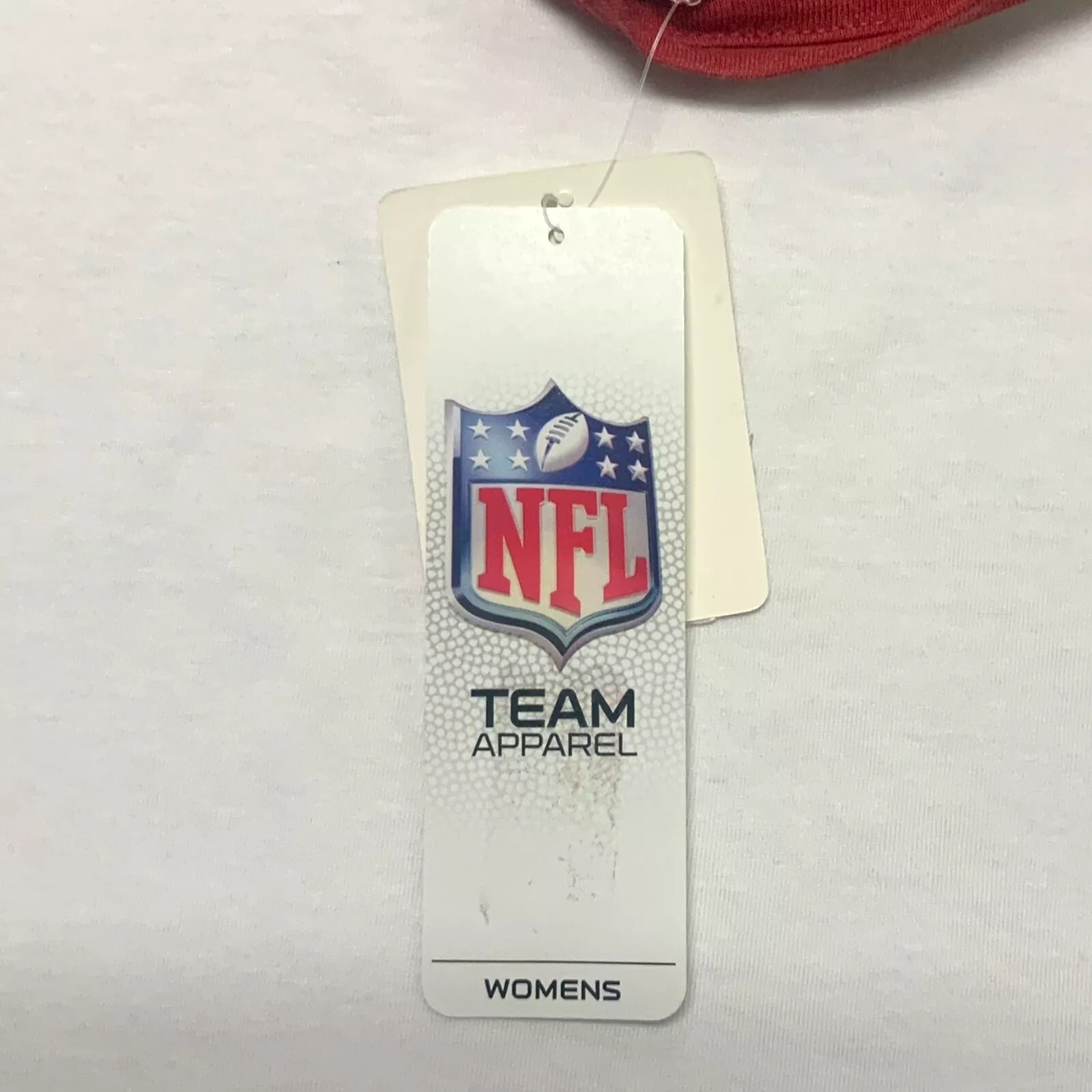 Cheer on your favorite team in style with this officially licensed NFL tee. The graphic print shirt features team colors and logo, with a v-neckline, 3/4 sleeves and classic fit. The comfortable jersey fabric is made from 60% cotton and 40% polyester and is machine washable. This is a women's size XL. Approximate measurements: 27.5" length, 24" chest, 22.5" raglan sleeve length.