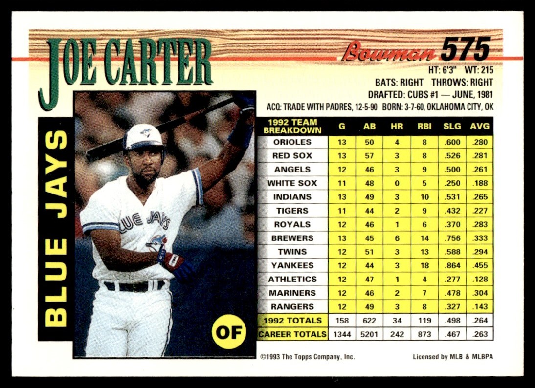 | 1993 Bowman Joe Carter Toronto Blue Jays #575 |