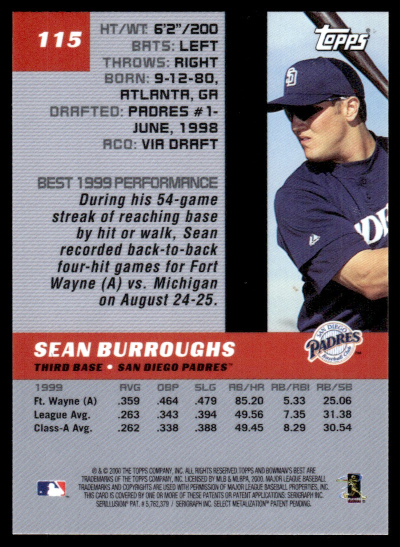 | 2000 Bowman's Best Sean Burroughs San Diego Padres #115 |