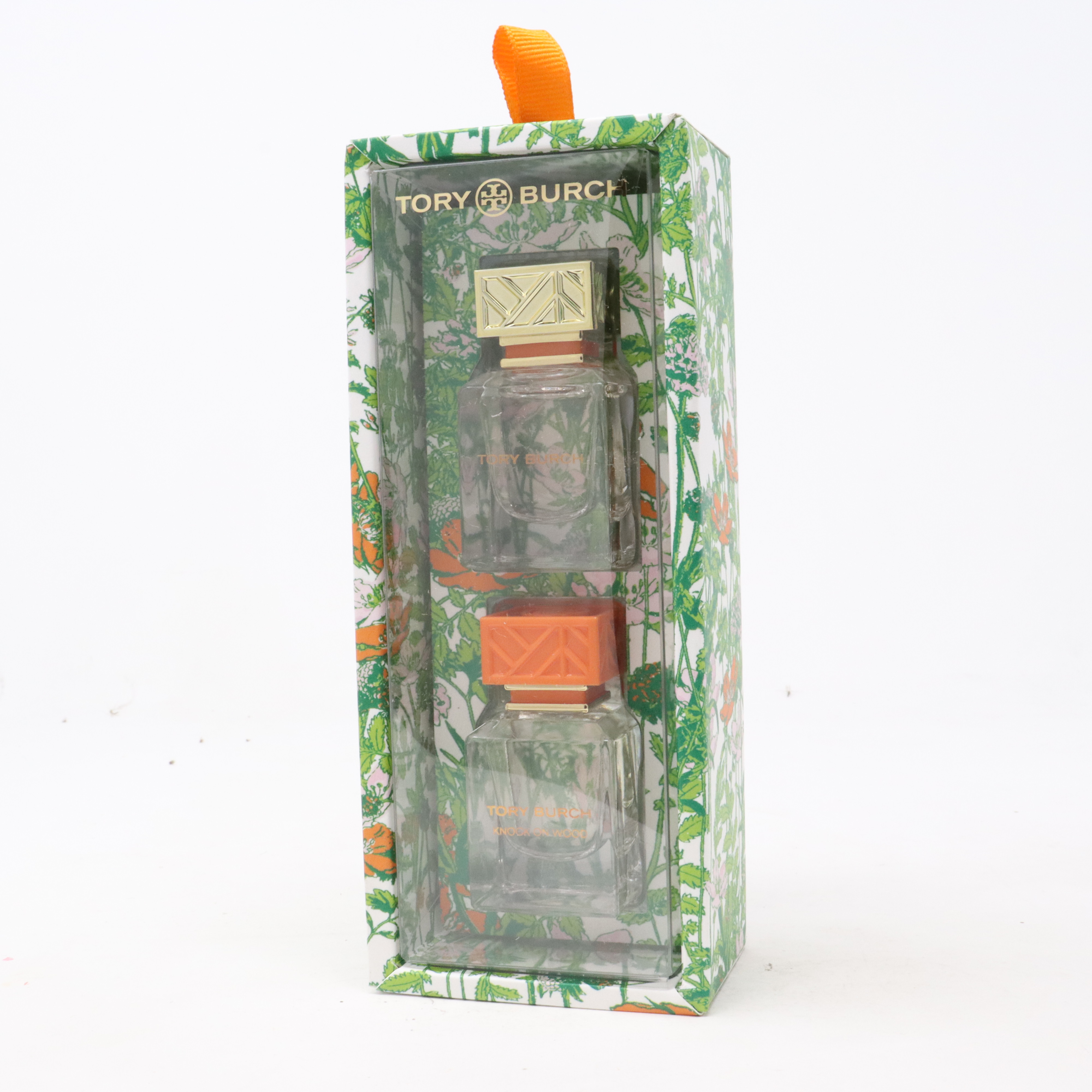 Tory Burch Mini Duo Set (2 x 7 ml) is a travel-friendly eau de parfum gift set from Tory Burch Beauty featuring mini sprays including the woody-floral Knock On Wood. Knock On Wood opens with bright blood orange atop a floral heart of Turkish rose and magnolia, settling on a warm, grounding base of Haitian vetiver and subtle sandalwood for an elegant woody-floral finish. Packaged as a two-piece sampler, this duo captures Tory Burch’s modern, confident fragrance aesthetic—ideal for gifting or trying signature scents.