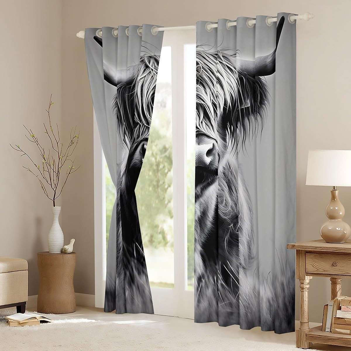Adorable Highland Cow Curtains, 52"x84" Grommet Drapes - Perfect for Any Season