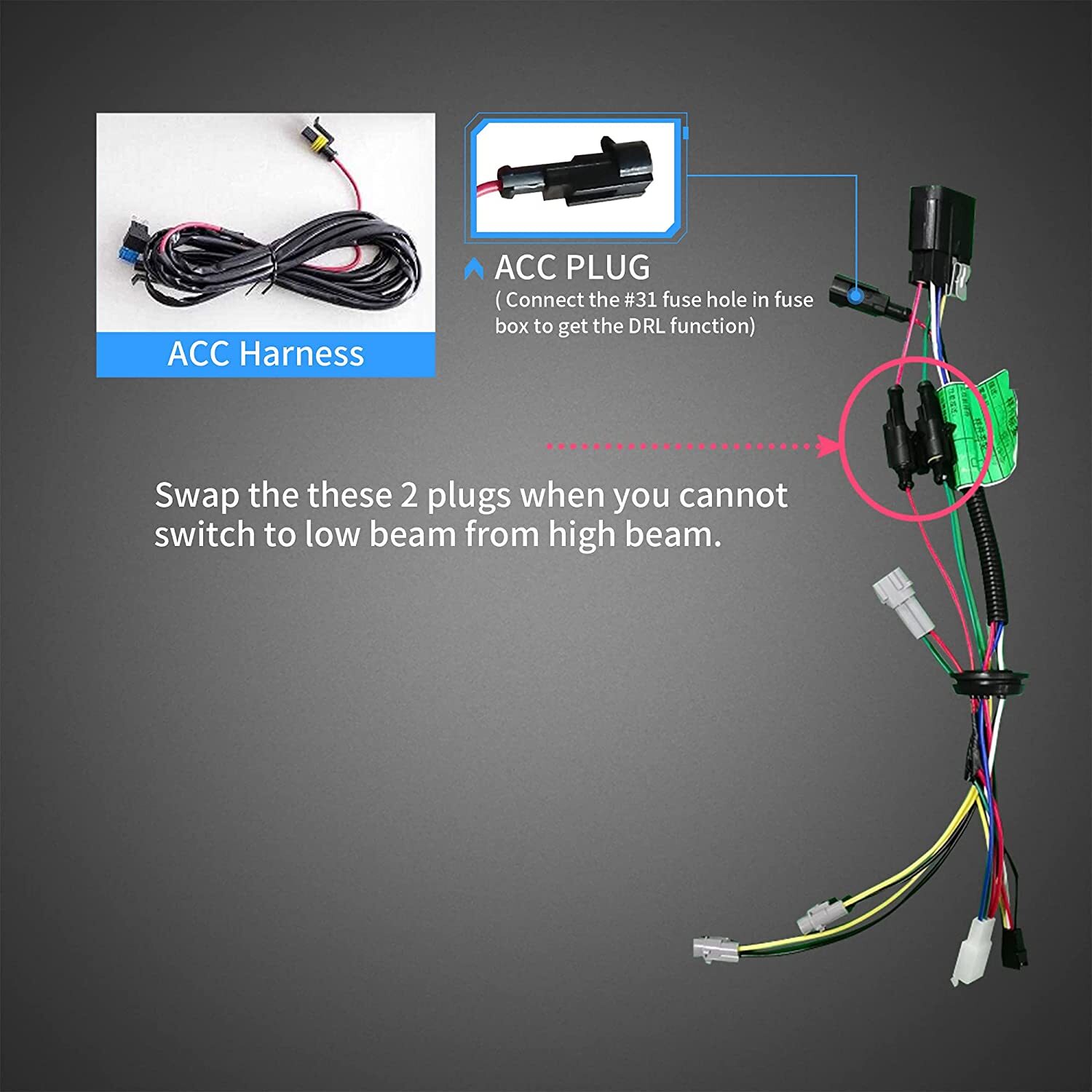This item has the same connections and wires with the original headlights. It is easy to install still professional installation is recommended.
