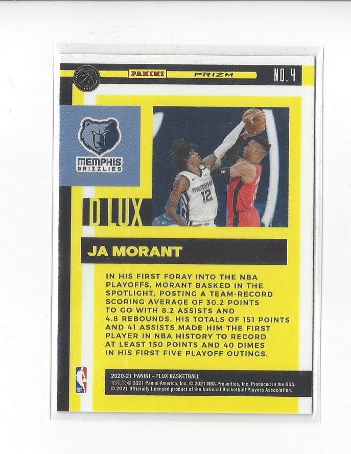 2020-21 Panini Flux D Lux Silver Prizm #4 Ja Morant Grizzlies