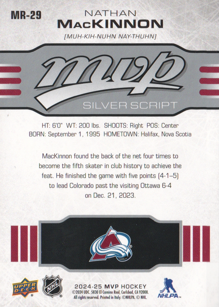 2024-25 Upper Deck MVP Hockey 10th Anniversary #MR29 Nathan MacKinnon