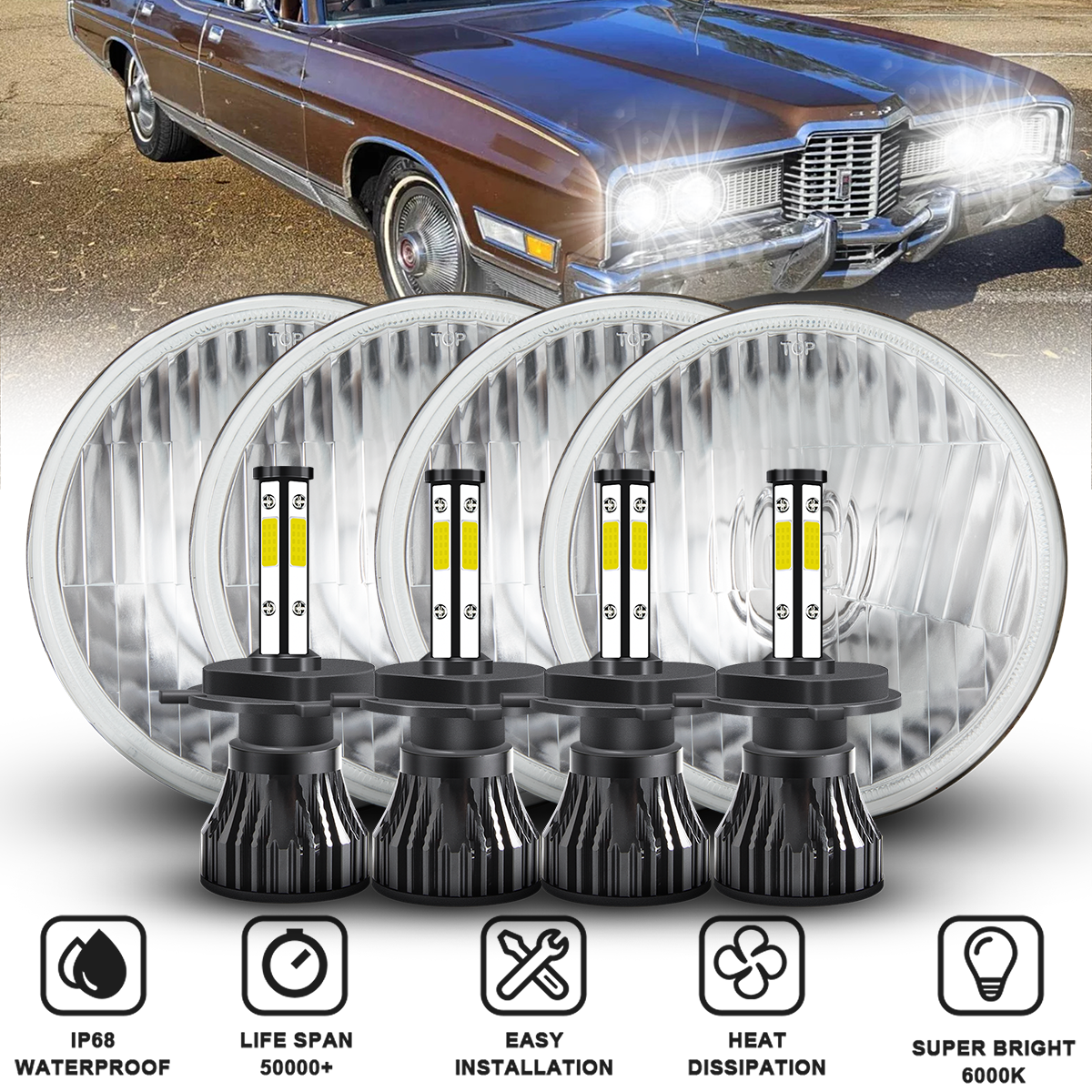4PCS 5.75" Inch Diamond Crystal Clear Semi Sealed Beam Glass Lens Housing Headlights. This Of Headlights Includes Super White H4 Light Bulbs. These Headlights Have A Clean Custom Look But Fit Into The Stock Buckets And Plug Into The Stock Wiring Without Modification.