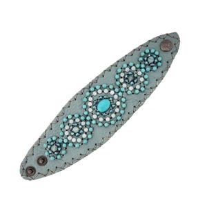 Bring a pop of color and artisanal charm to your look with this handcrafted turquoise leather cuff bracelet. This wide cuff is crafted from soft, durable turquoise blue leather with hand-stitched detailing along the edges for an authentic, rustic vibe.
