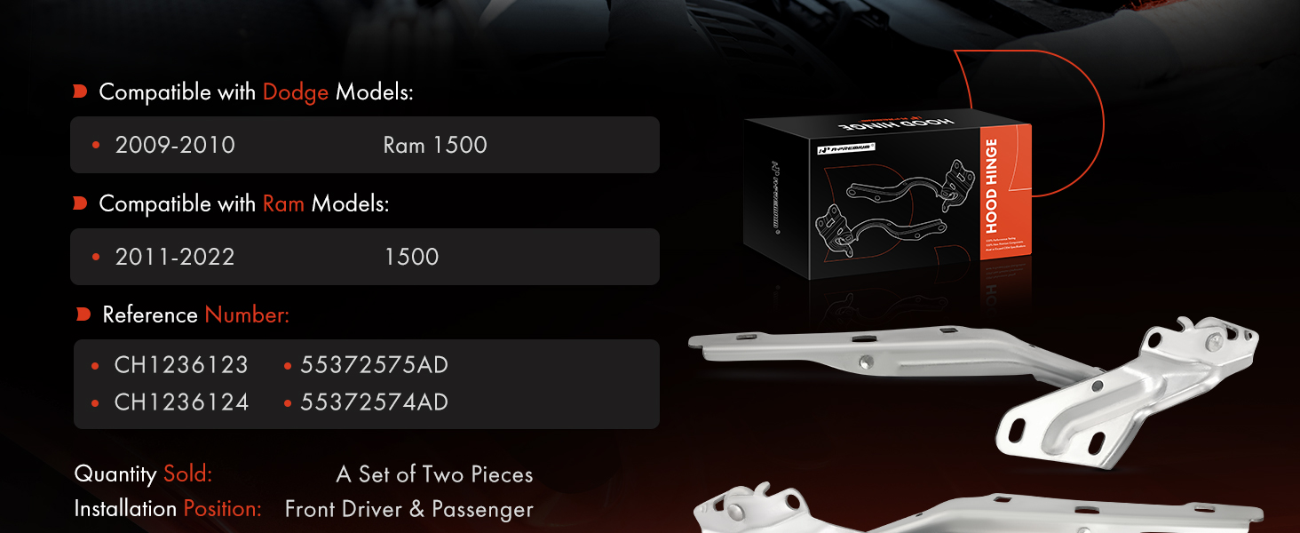 A-Premium 2Pcs Front Driver & Passenger Side Hood Hinge for Dodge Ram 1500 09-24