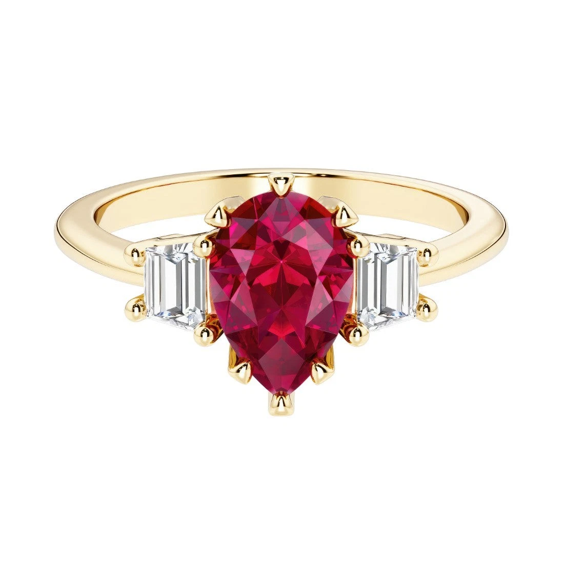 2 Carats Emerald Cut Lab Grown Emerald and Side Stones Diamond Trilogy Three Stone Ring in 14k Gold
