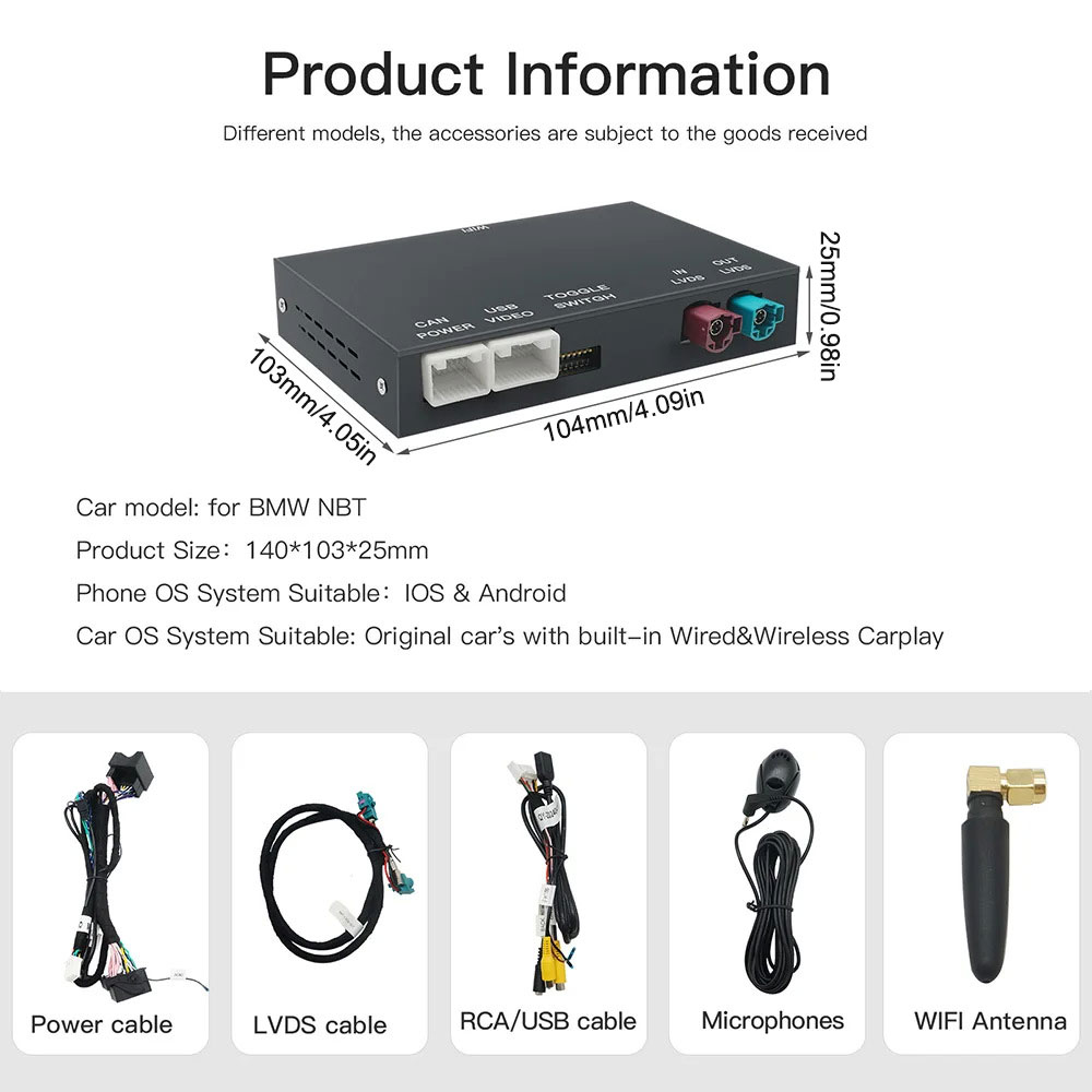 Passend für BMW NBT-Systemautos, nicht passend für CIC-SYSTEM. (Wenn Ihr Auto ein F20 F30 Baujahr 2012-2013 ist, kontaktieren Sie mich bitte, um das System zunächst zu bestätigen.)