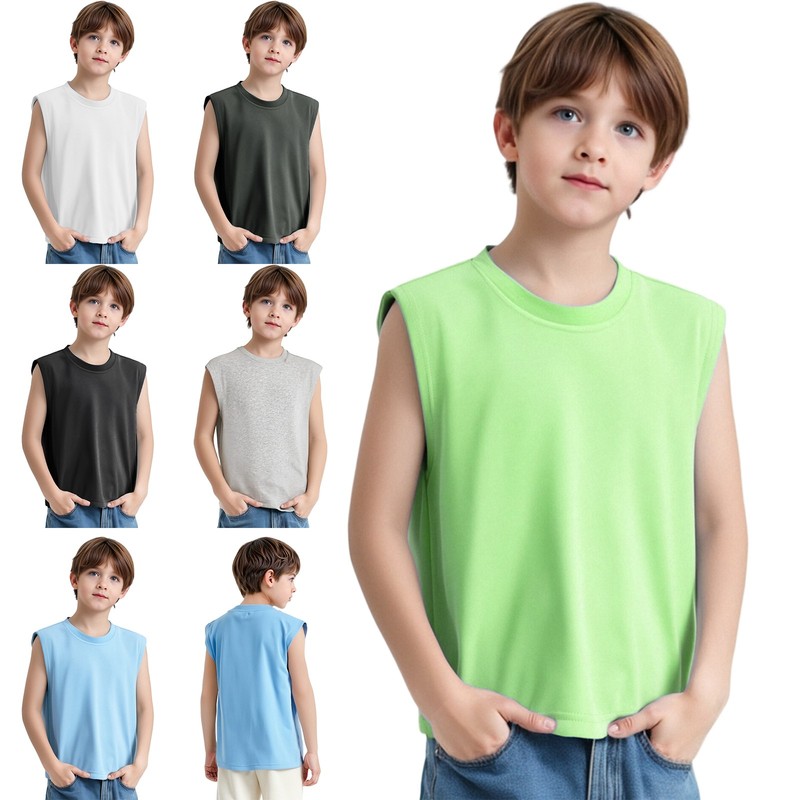 The round-neck and sleeveless is trendy and follows the latest fashion trends, giving kids a cool and sporty look.