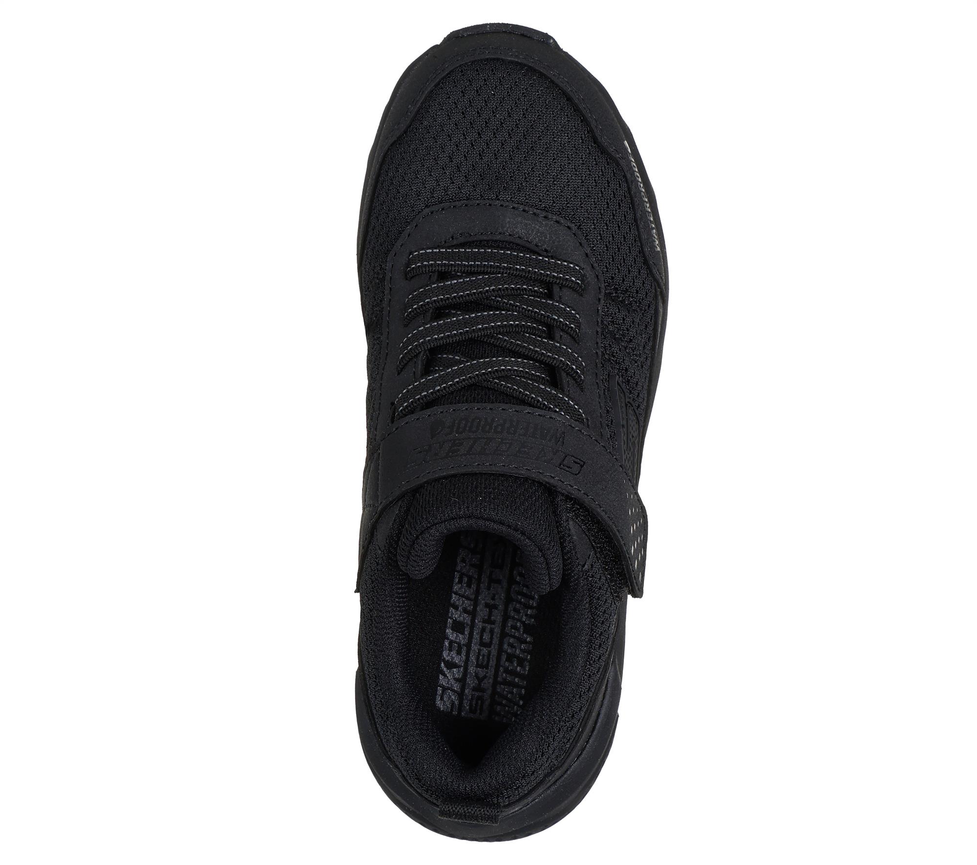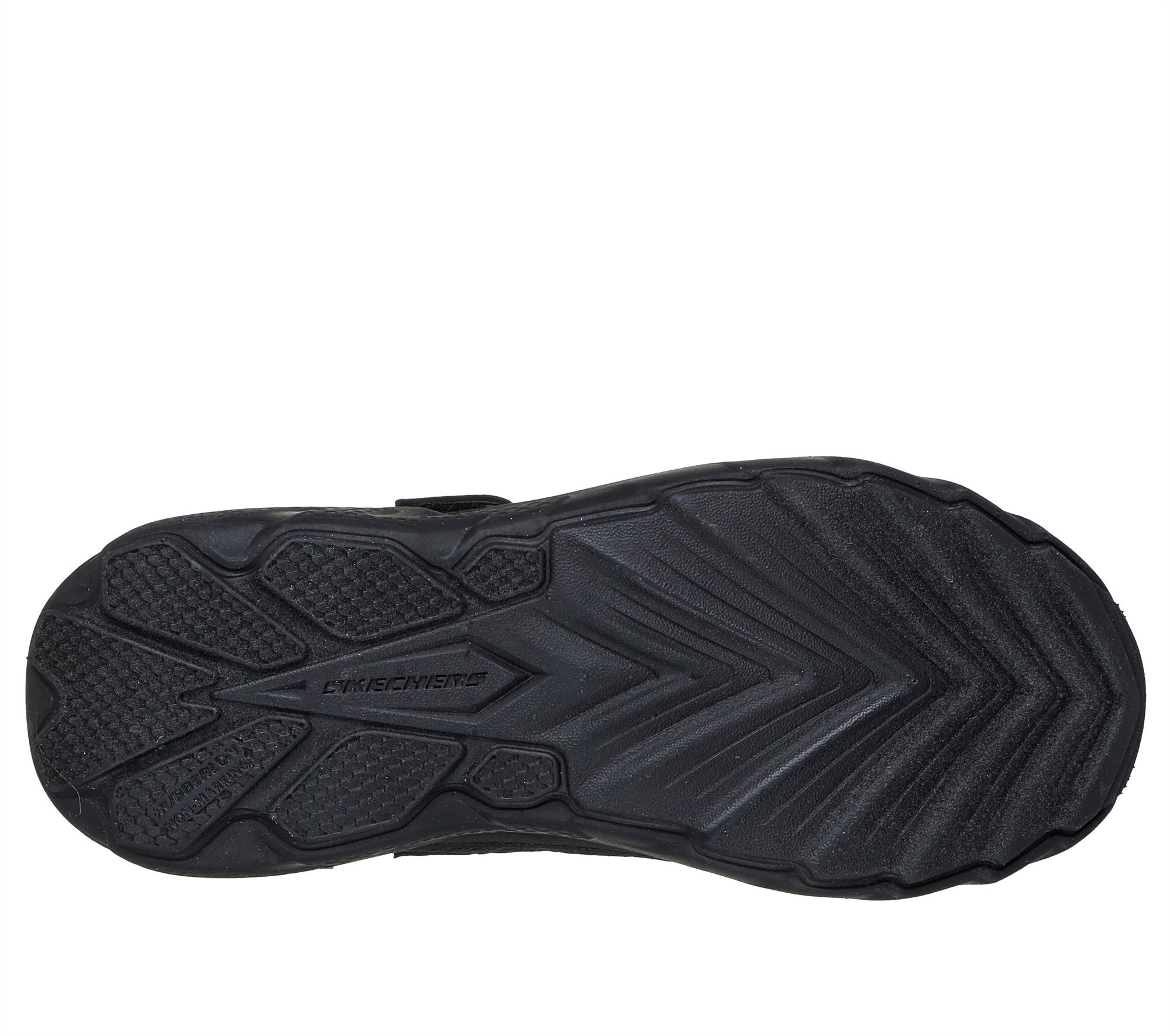 This multi-field athletic design features a mesh and synthetic upper with stretch laces, Skechers adaptive closure, and a durable rubber outsole.