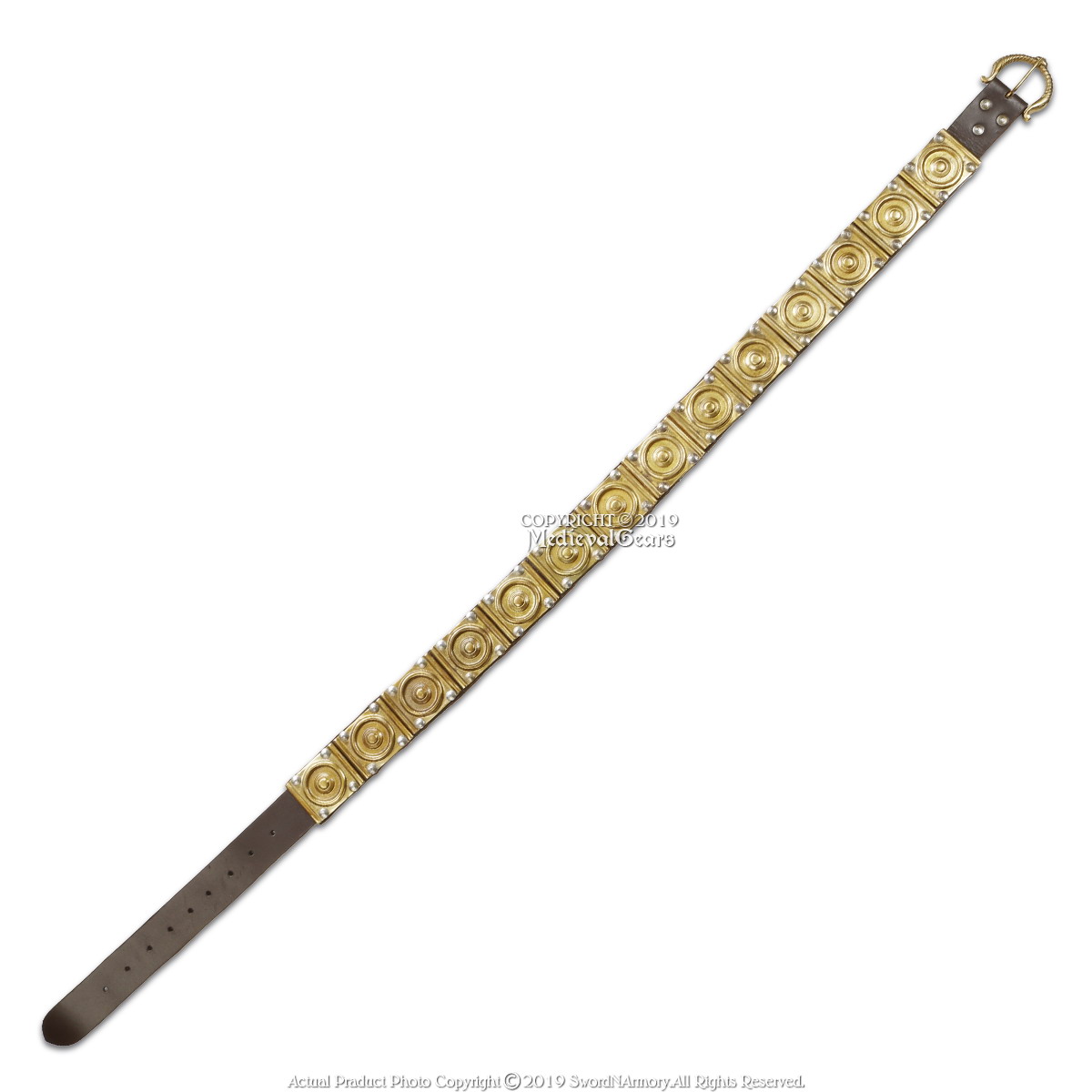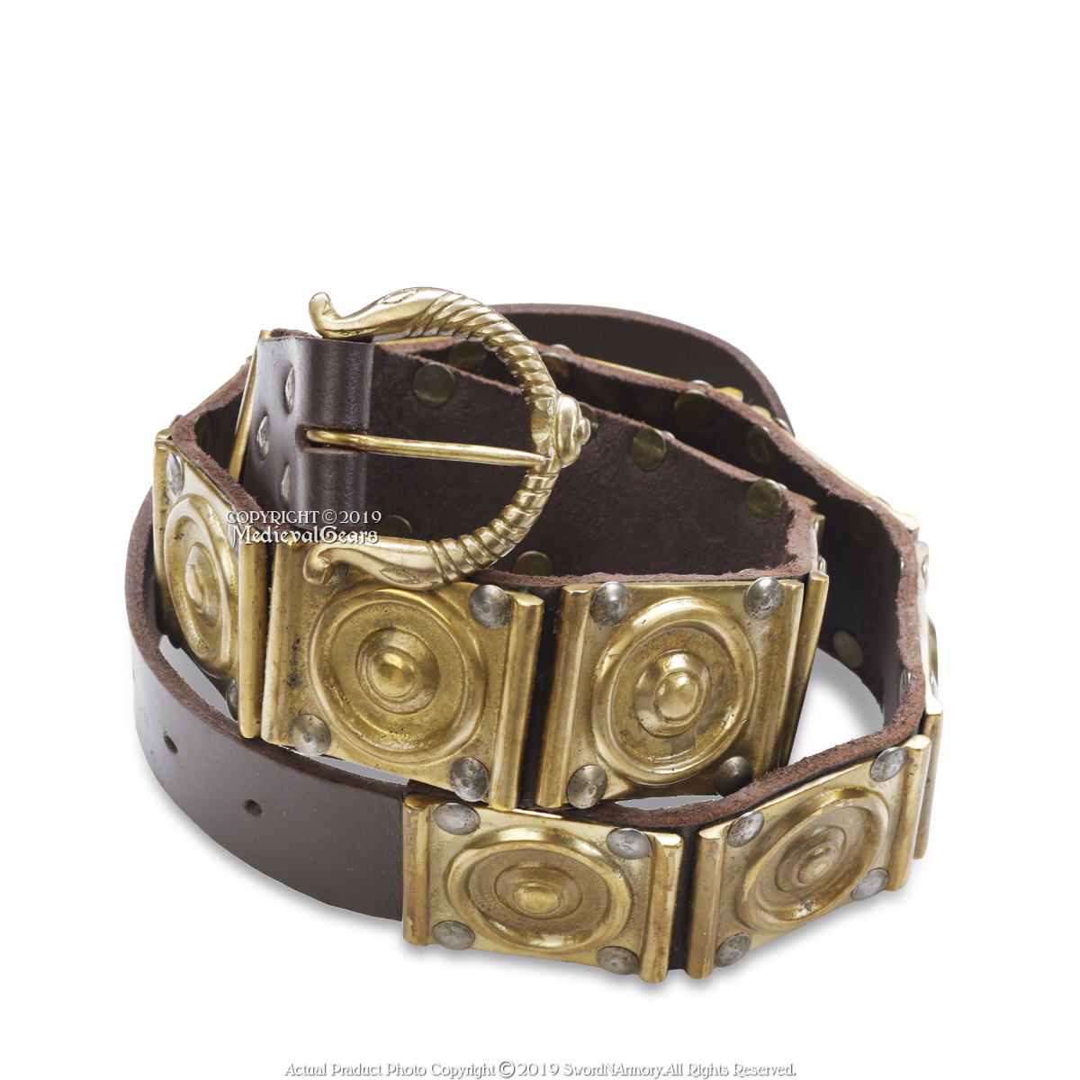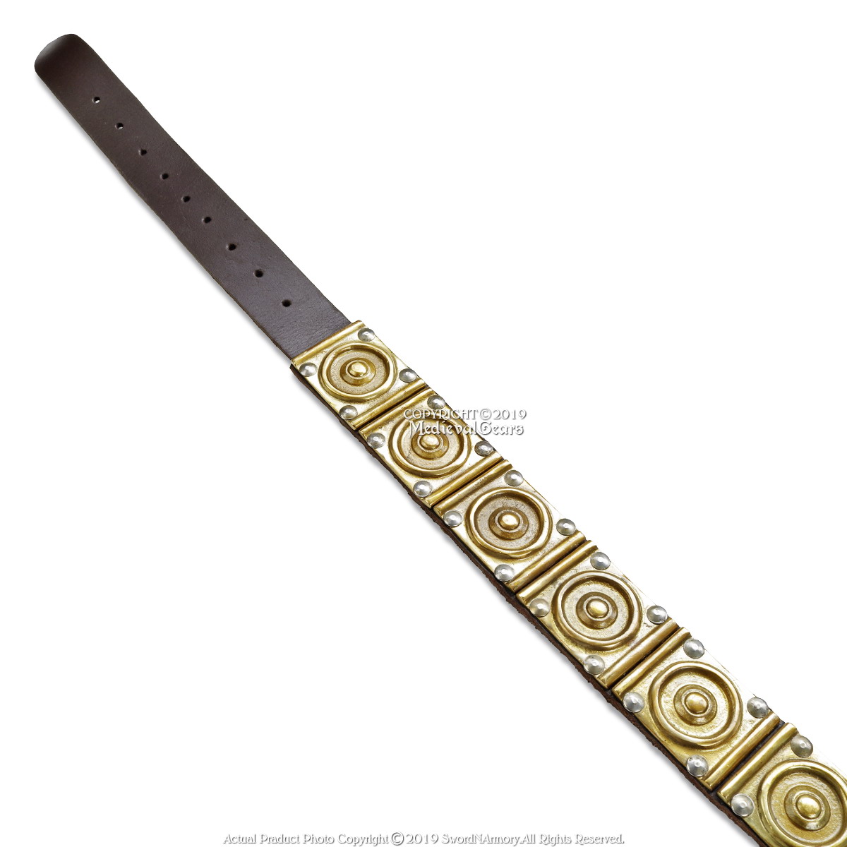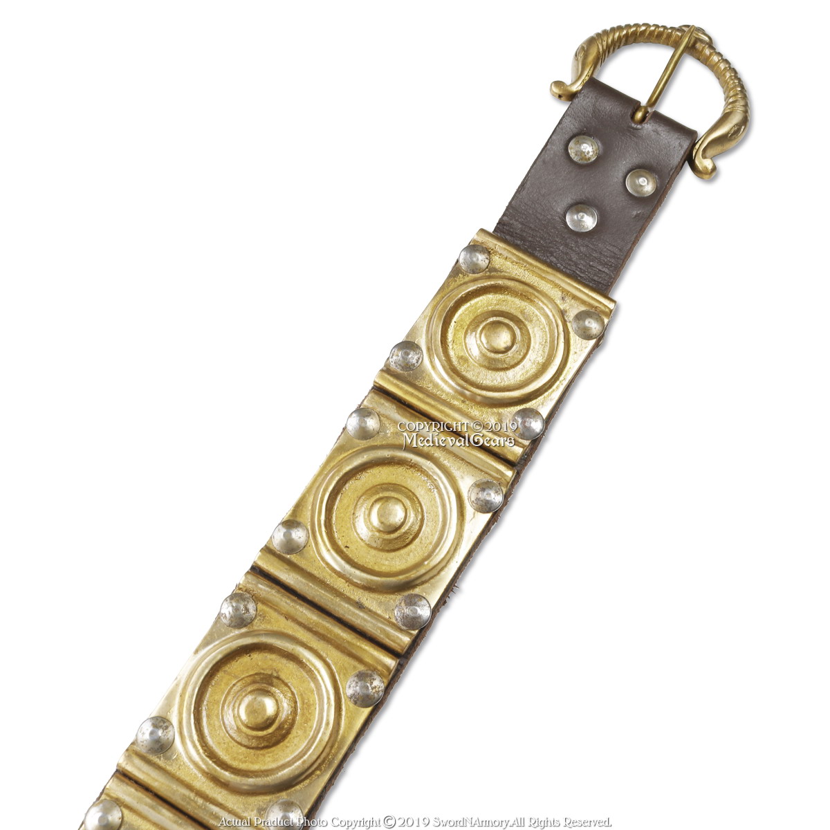 The legionary belt fastens using a brass buckle closure authentic to the period.