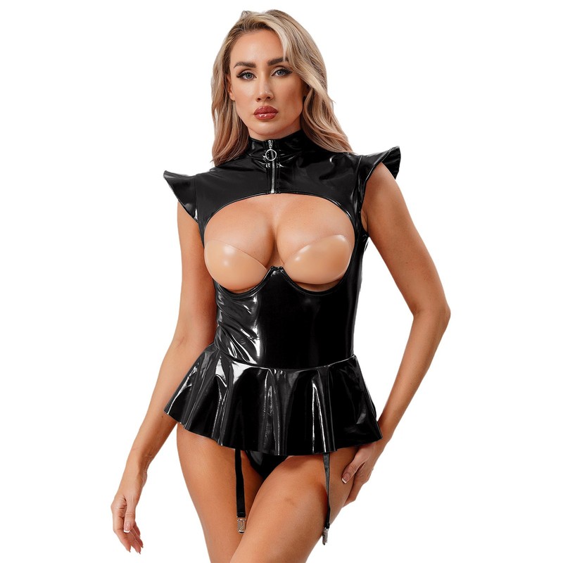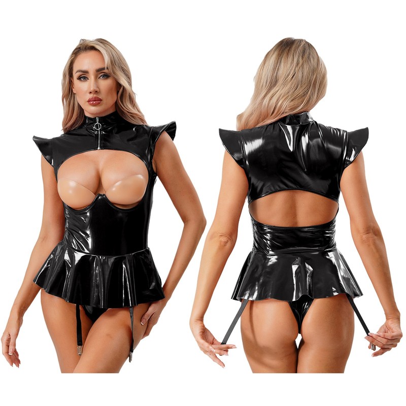 Made of a blend of polyester, PU and spandex, the bodysuit is stretchy, durable and shiny, offering a comfortable and charming fit.