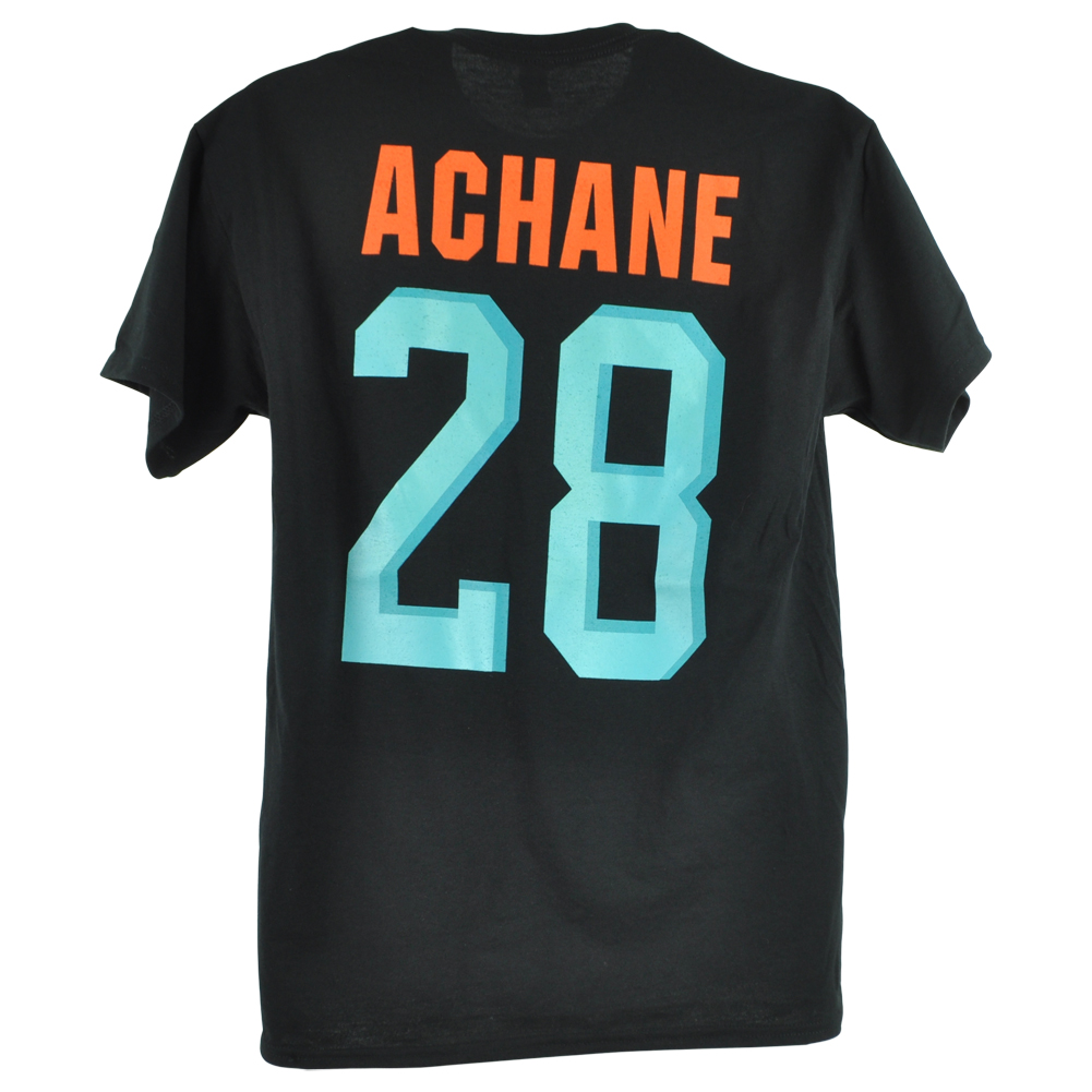 Description: Show the love for your team wearing this shirt. This shirt features team name and player number printed on front. Player name and number printed on the back. Men size. Color black. This shirt is made of 50% Cotton 50% Polyester. Crew neck, short sleeve for a comfortable fit. Authentic Sinbad Sports Merchandise