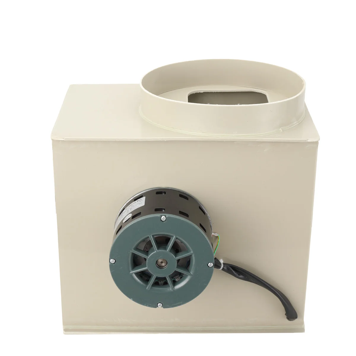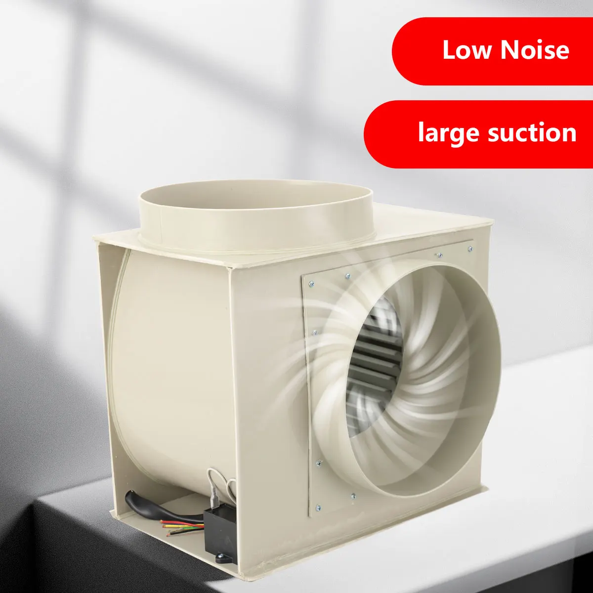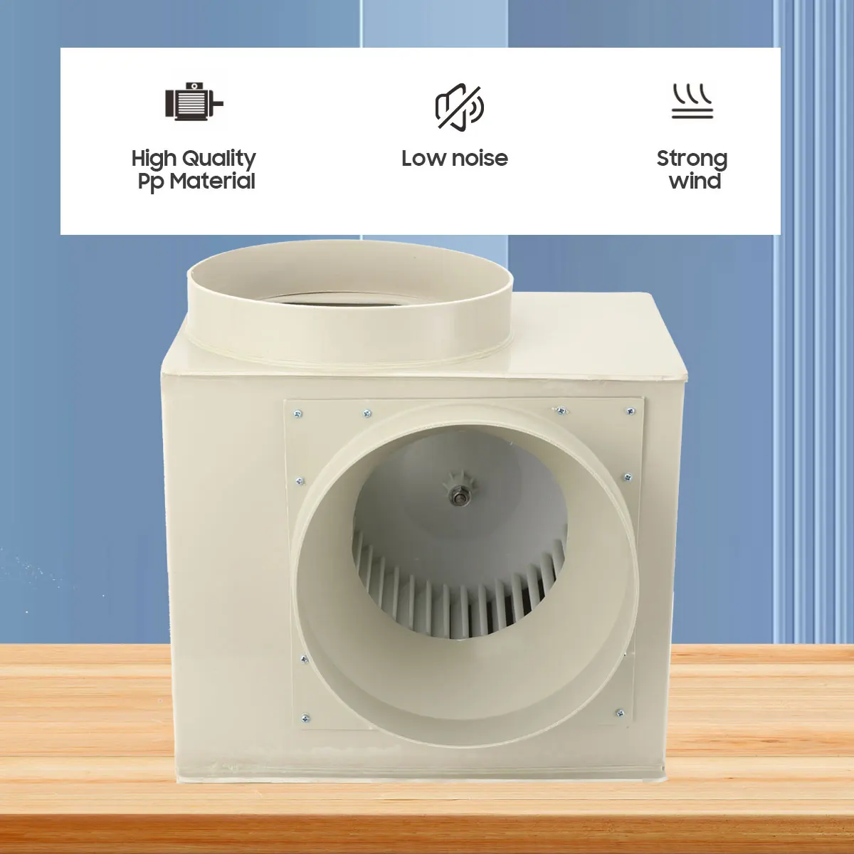 Corrosion-Resistant, Quiet PP Centrifugal Fan for Fume Hoods, 300W 220V Strictly Selected Materials Housing: PP material Impeller: ABS material Motor: Built-in copper wire Professional Craftsmanship Rigorous production control, pursuing quality Application Classification Product features duct-connected ventilation Manufacturing Process Housing: Hand-welded for airtight sealing, preventing air leakage Product Function Connects to ductwork; motor drives impeller to generate airflow suction, extracting smoke, dust, gases, and mist Simple Installation Easy to install, user-friendly setup