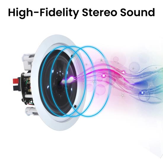 The speaker system delivers stereo sound to any room in your home or office without cluttering floor space. This pair of 5.25'' speakers can be used for in-wall and in-ceiling applications as they mount flush for a clean look. Perfect for custom installations, the speakers feature polymer dome tweeters, impressive power handling capability, high-temperature voice coils and high-efficiency response rates – all to produce more full and rich sound.