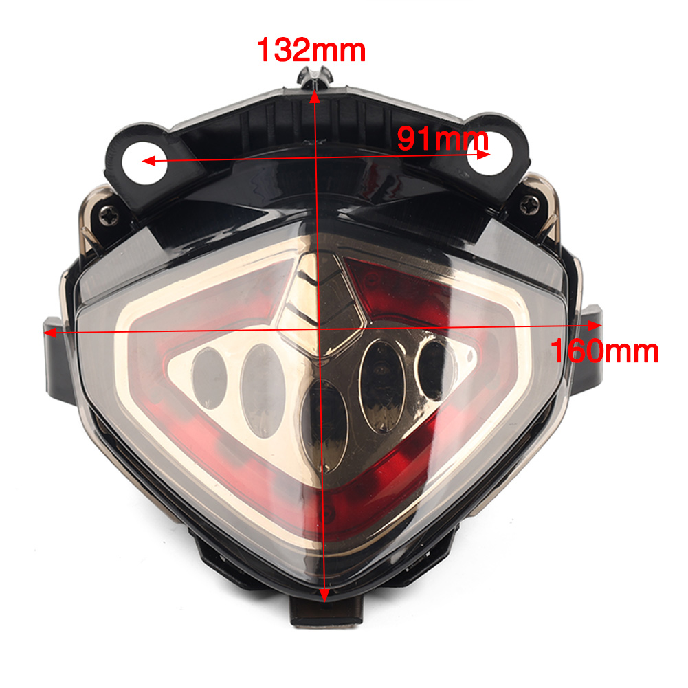 Integrated LED Tail Light Turn Signal For Honda CBR 500 2013-2014 Features: 1.Made of high quality material, durable. 2.Quick on/off response time, longer lifetime, good working condition. 3.Tail light consists of running, brake and turn signal lights. 4.No heat produced, high resistant to vibration, waterproof and rust free. 5.No modification required to fit the tail light. This LED integrated tail light is direct replacement of stock tail light, you will need to splice the wires and attach to the tail light, easy installation, but recommend professional installation! Specification: Condition:Brand New Material:Plastic Color:Red Placement on Vehicle:Rear Fitment: For Honda CBR 500 2013-2014 Please check the size carefully and ensure this part fits your motorcycle before you place the order. Package Included: 1 Pc Tail Light Notes: 1.Please compare the details before you purchase. 2.Due to the lighting and screen settings, the real color may slightly different from the picture. 3.Please allow slight manual measurement deviation for the data. 4.Instruction of installation is not included. 5.This is aftermarket replacement item but not genuine.