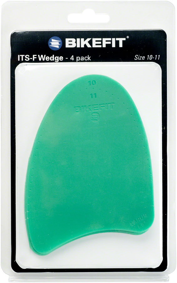 In The Shoe (ITS) Wedges provide 1.5 degrees of inward angulation (aka "varus") in cycling shoes that have ample room in the forefoot area. They are often used in conjunction with Cleat Wedges or as a quick way of determining if inward or outward forefoot tilt or canting exists.