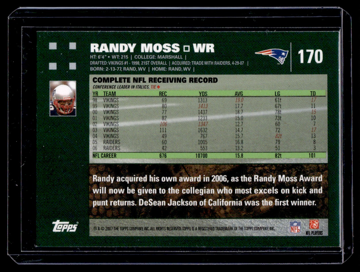 | 2007 Topps Randy Moss New England Patriots #170 |