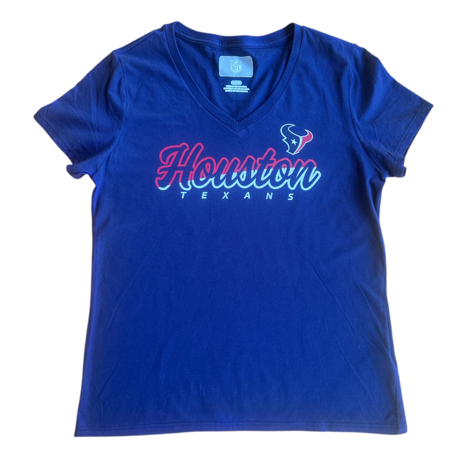 NFL Houston Texans Women's V-Neck Short Sleeve T-Shirt in Navy Blue, L