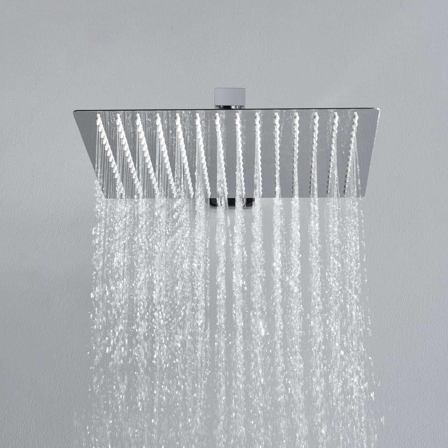 - Douche de tête 30x30 cm: la combinaison de la technologie ultra fine et de la technologie Air-in conduit à un débit d'eau puissant et puissant, qui agit comme un massage complet et dynamique pour votre peau. Buses en silicone de haute qualité qui empêche la croissance bactérienne et l'accumulation de calcaire, avec un chiffon et de l'eau, vous pouvez facilement nettoyer les buses d'eau et la surface.