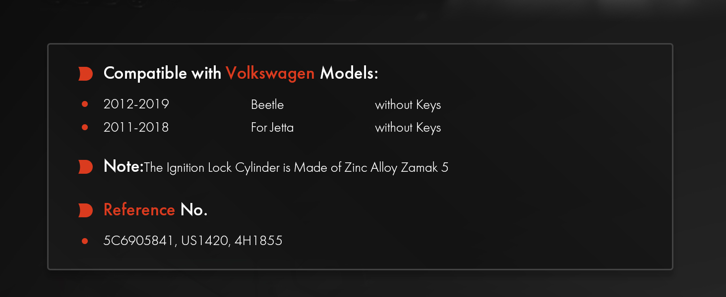 A-Premium Ignition Lock Cylinder Zamak 5 for Volkswagen Jetta 2011-2018 Beetle