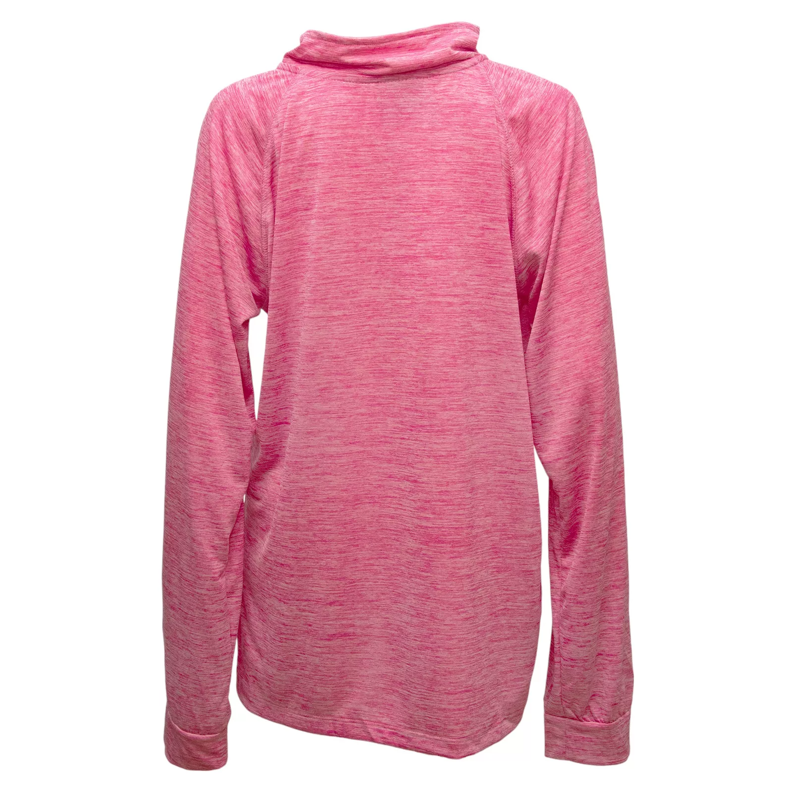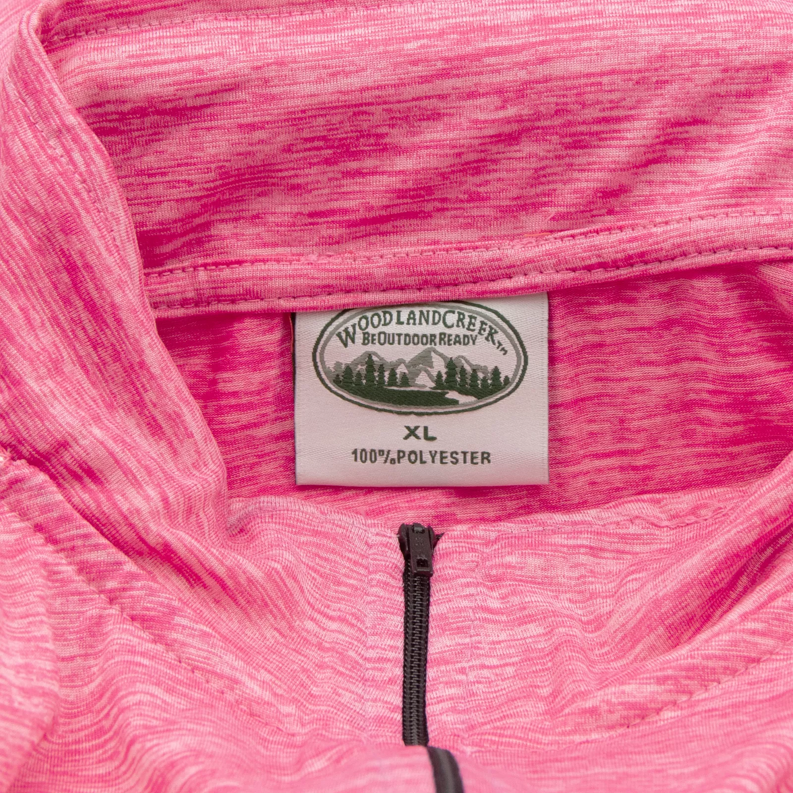 A blend of comfort and style, the Woodland Creek Women's Quarter Zip Long Sleeve Performance Shirt is perfect for casual and active everyday wear. This long sleeve pullover shirt in pink heather features a chest length zipper, a soft structure collar, and a non-binding fit. Made of 100% lightweight polyester, this women's outdoor performance shirt is moisture-wicking and breathable for all-day comfort. Wear it as a layering garment in cooler temps or as an individual casual shirt. Machine washable for easy care, this versatile shirt is tagged a women's size x-large (XL). Measurements: 26” Chest, 29” Overall Length, 28” Sleeve Length. Made in Egypt.