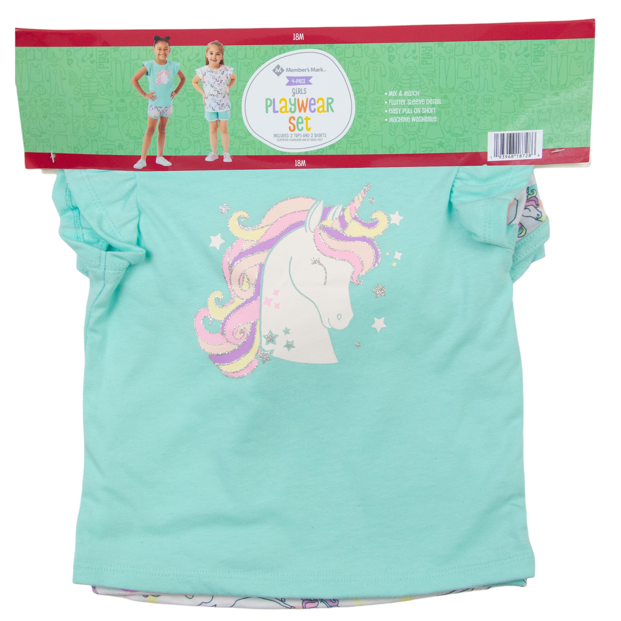 Member's Mark Toddler Girl's 4-Piece Unicorn Shorts & Tops Playwear Set, 18M