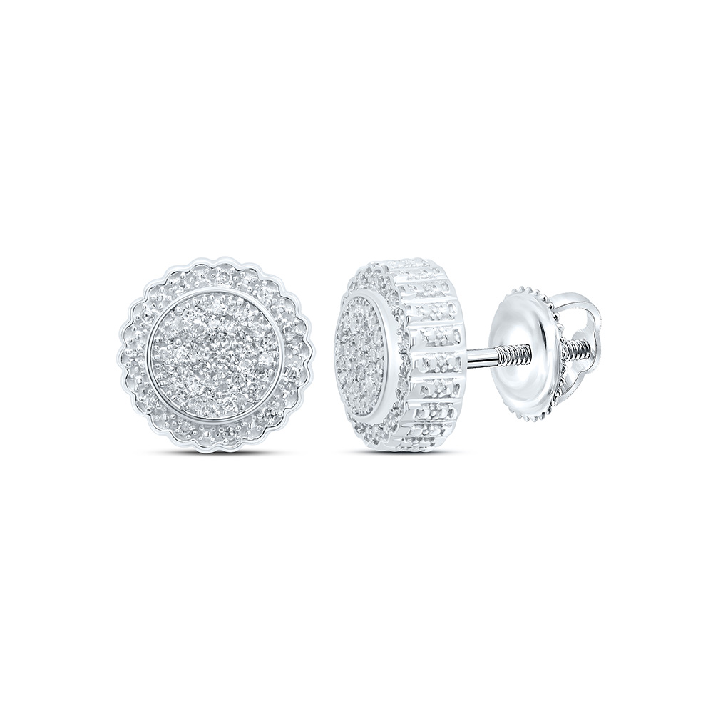 (3.27 gr. of 925 Sterling Silver | Total Carat Weight: 0.20 ct. t.w. of Diamond | Length: 10mm | Width: 10mm | Clarity: I1 - I2 | Color: H - I | Unisex Adult Genuine Diamond 3D Round Cluster Statement Stud Earrings)
