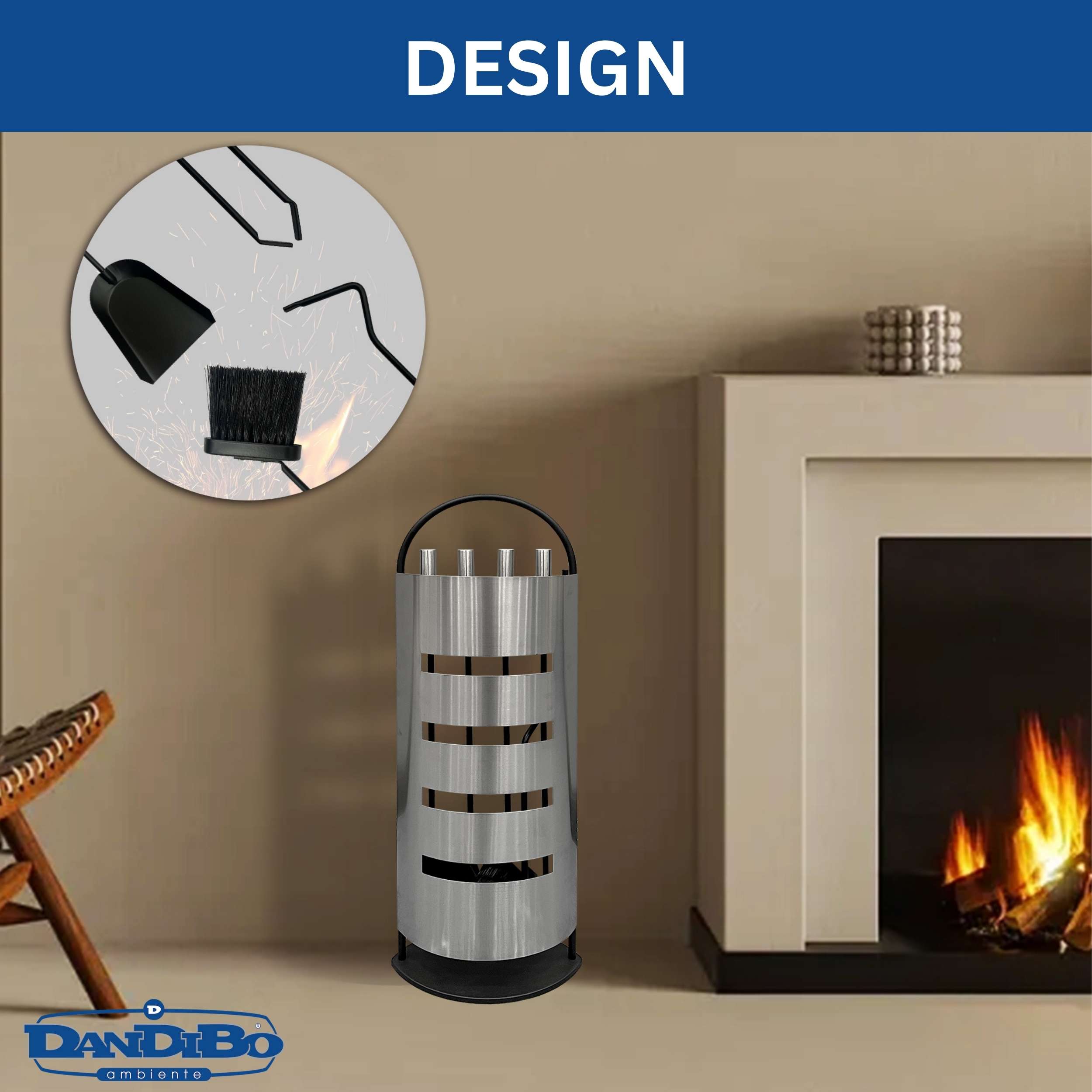 Langlebige Materialkombination: Gefertigt aus robustem Stahl und gebürstetem Edelstahl, überzeugt das Set durch Hitzebeständigkeit und lange Lebensdauer. Es ist für den täglichen Gebrauch ausgelegt und fügt sich als dekoratives Element perfekt in Ihr Wohnzimmer ein.