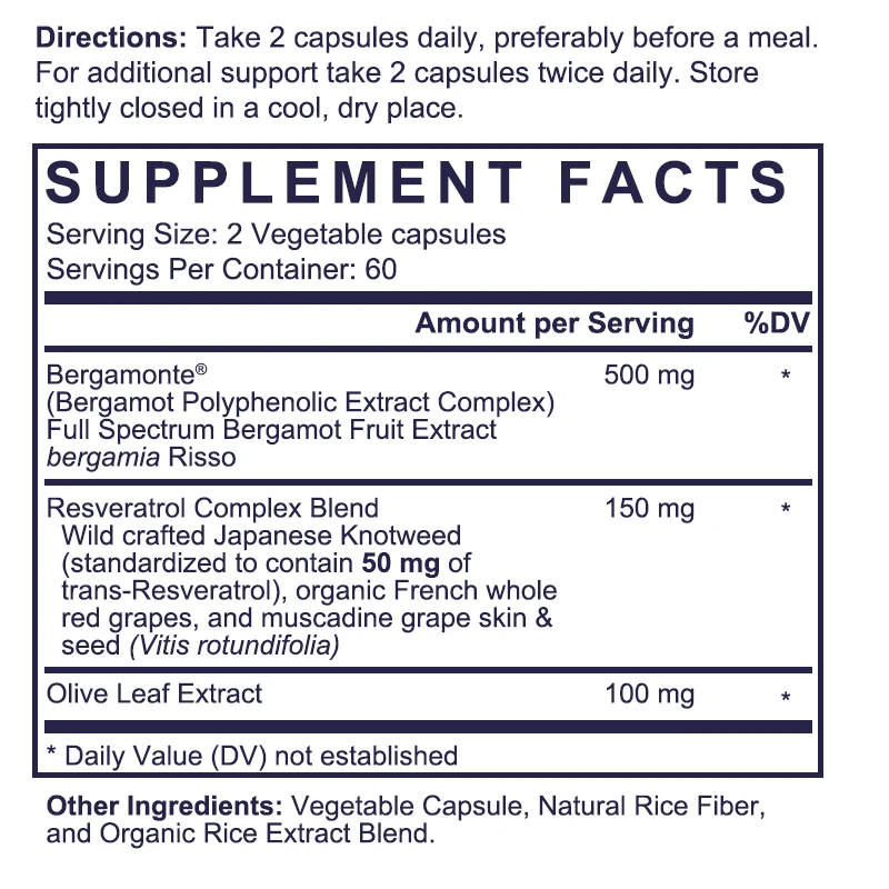 Ingredients: Bergamot, Resveratrol, Olive Leaf