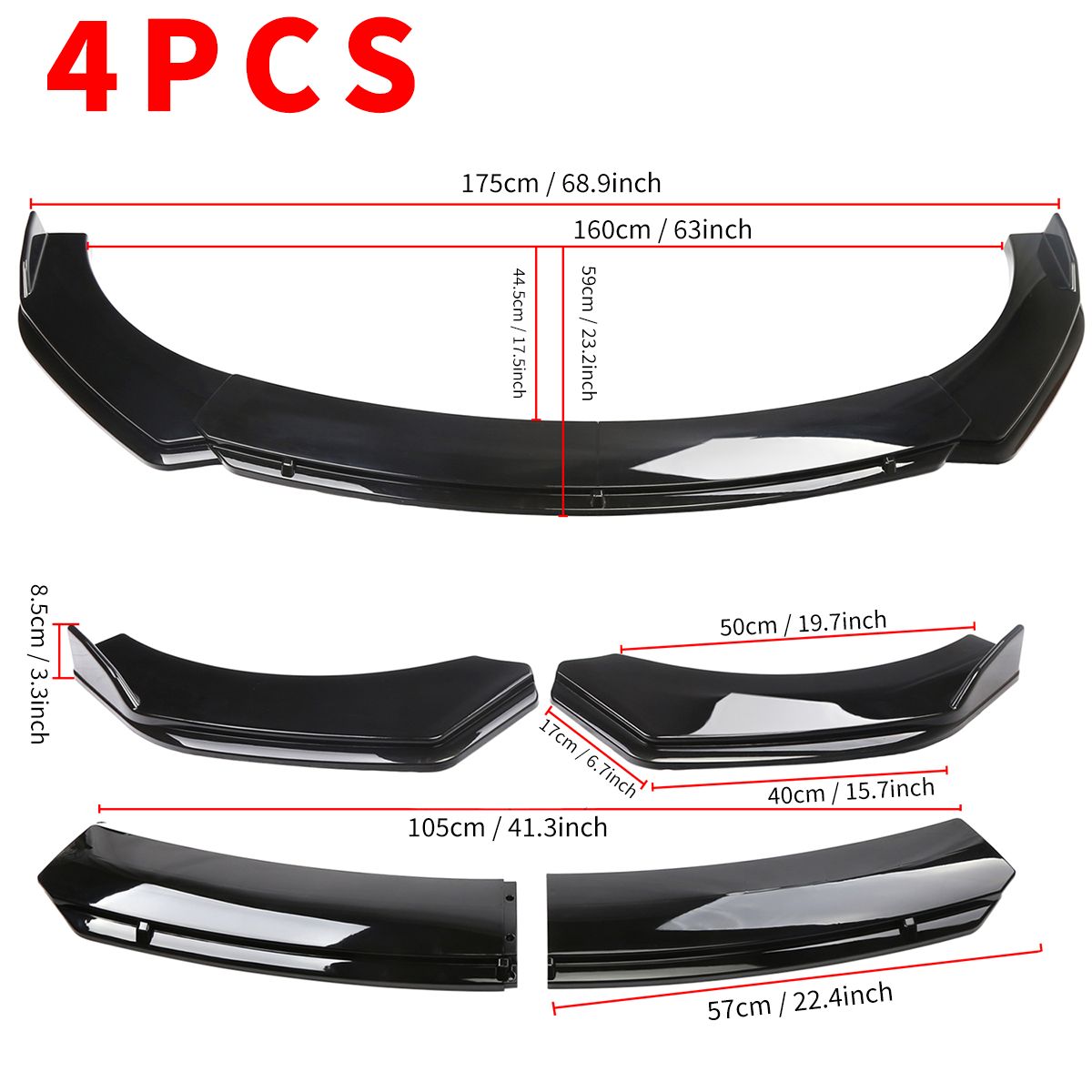 NOTE: Not for Fiat 595 500 Not for lexus is250 2007 Not for Audi A7 2014 Diesel Hatch 3.0 TDI quattro AWD -- 4GA,4GF 2967cc 230KW 313HP CGQB Not for Audi A7 2011 Diesel Hatch 3.0 TDI FWD -- 4GA,4GF 2967cc 150KW 204HP CLAB Not for Vauxhall Insignia 2015 Petrol Hatch 1.8 FWD Mk I (A) G09 1796cc 103KW 140HP A 18 XER;B 18 XER Not for BMW 330d 2017 - F30 Not for Jeep Grand Cherokee 2021 High Altitude Sport Utility 4-Door 3.6L 3604CC 220Cu. In. V6 FLEX DOHC Naturally Aspirated Not for Benz C250 2015 Not for Jeep grand Cherokee SRT 2016 【Universal Front Bumper Lip】This front bumper lip splitter is fit for most models with front bumper size around 1680mm-1900mm. Feature: Made of Updated durable and sturdy ABS plastic, adding stiffeners, no deformation in long-term use. More longer and wider than others. Provide an elegant and personalized appearance. Prevent the car from being scraped and improve the level of the decoration of the car. Come with screws, More convenient installation and stable installation. This is a set(4 pieces) front bumper cover lip front spoiler Instruction Not Included, Professional Installation Is Highly Recommended. Specification: Type:Front Bumper Lip Body Kit Spoiler Material:ABS Color: Glossy Black Placement on Vehicle: Front;Lower Package Included: 1 x Set Of Front Bumper Cover Lip Front Spoiler(4Pieces) 1 x Bag Of screws