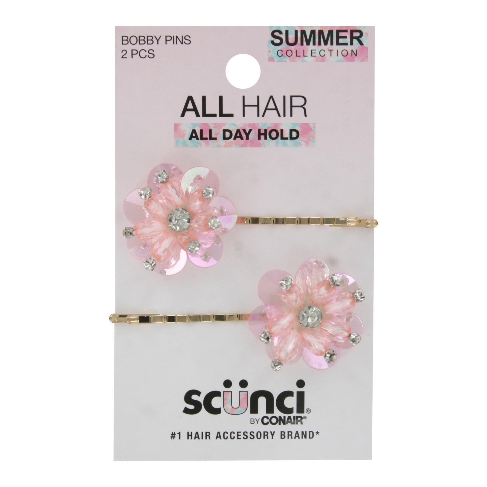 Scunci Summer All Hair All Day Hold Bobby Pins, Pink Floral Design, 2-Count