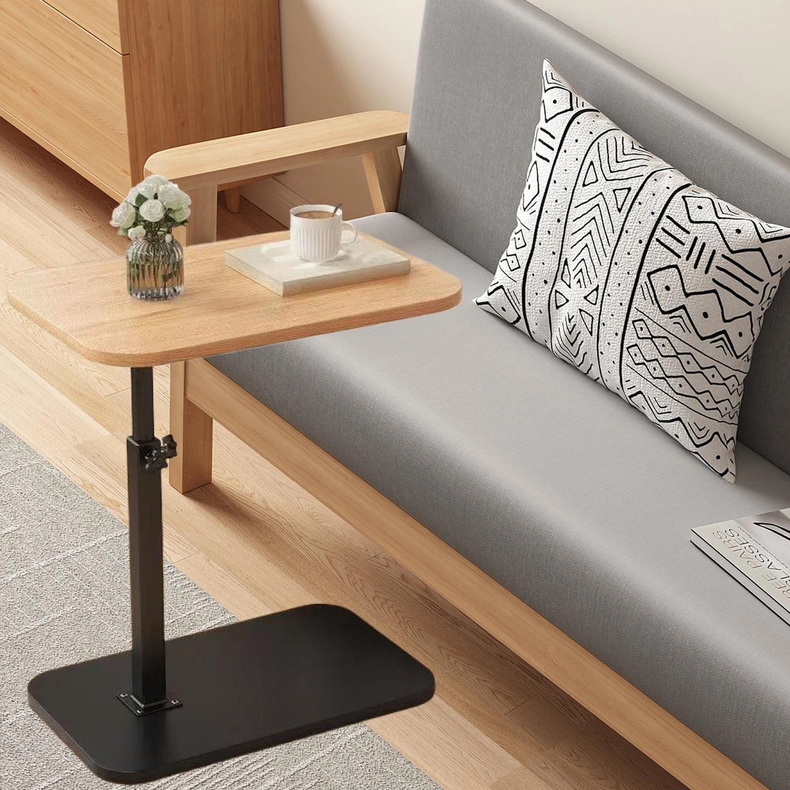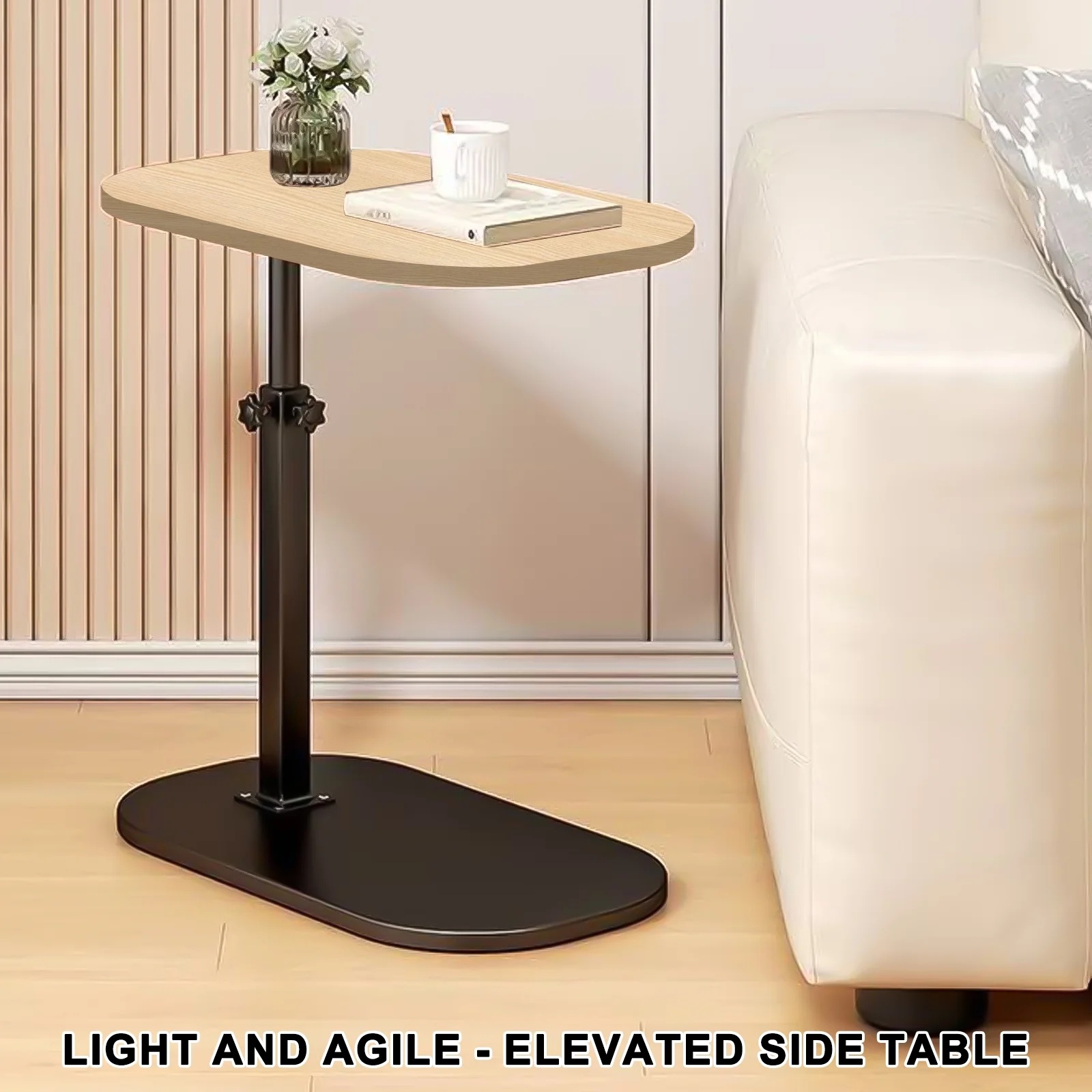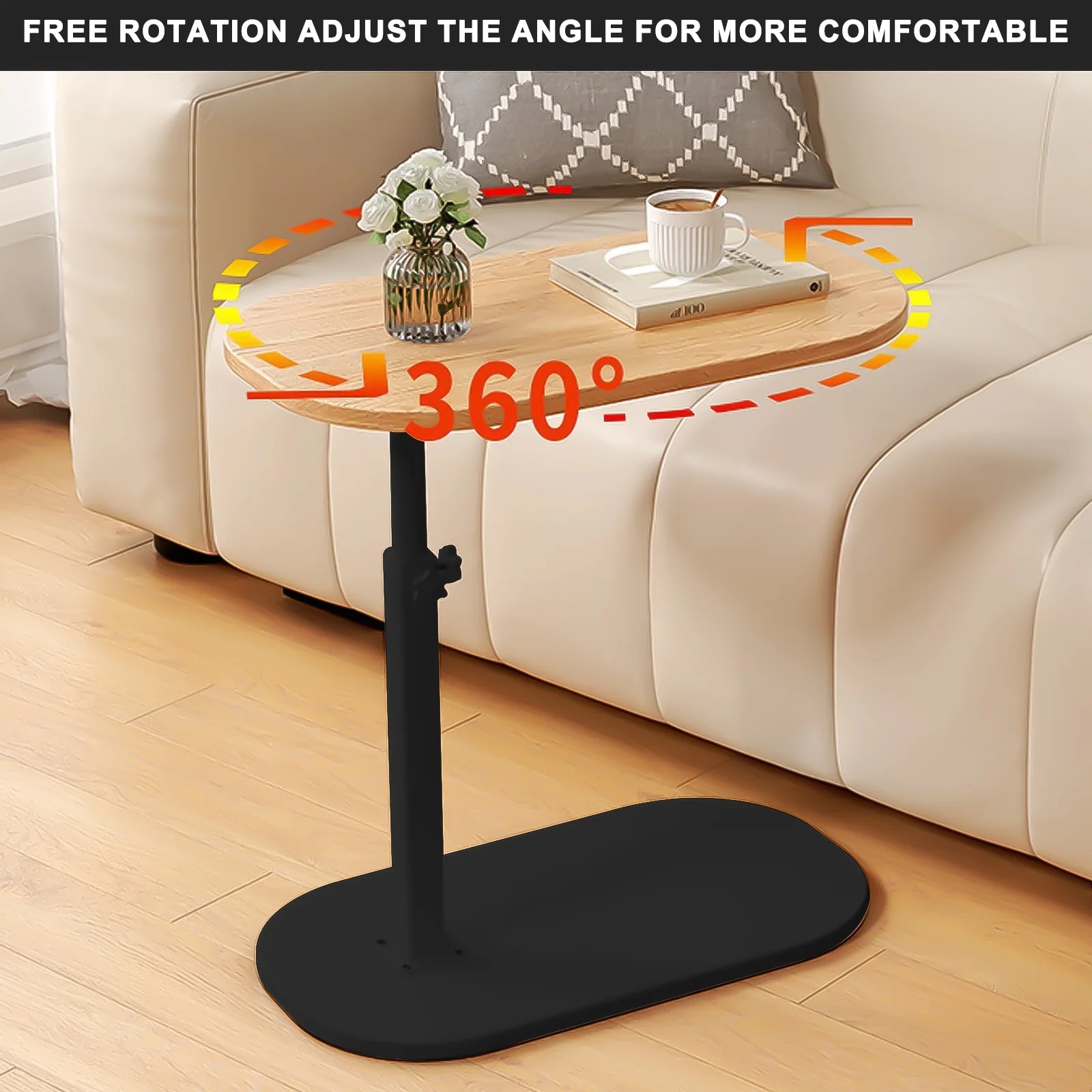 【Adjustable height &Rolling】This side table with wheels can be adjusted height to suit bathtub, couch, bed, and chairs, while the swivel table can be rotated 360°. The C shaped end table is designed so that it slides nicely under the sofa. This side table comes with wheels on the bottom, you can easily move it to where you want to go.