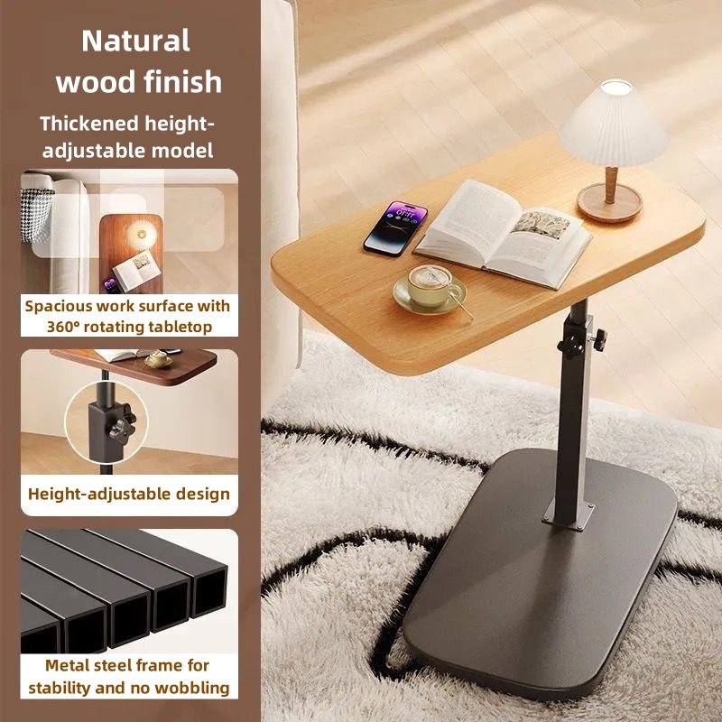【Multi-functional small table】This side table is made of thicker steel frame and thickened wood boards to ensure its stability, it can hold laptop, books, you can use swivel side table to work, you can also use it as a couch tray for snacks, drinks and other items. Both top and bottom can hold items to save more space.