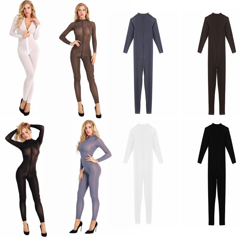 Damen Lackleder Langarm Jumpsuit Overall Einteiler Katzenanzug Wetlook Clubwear
