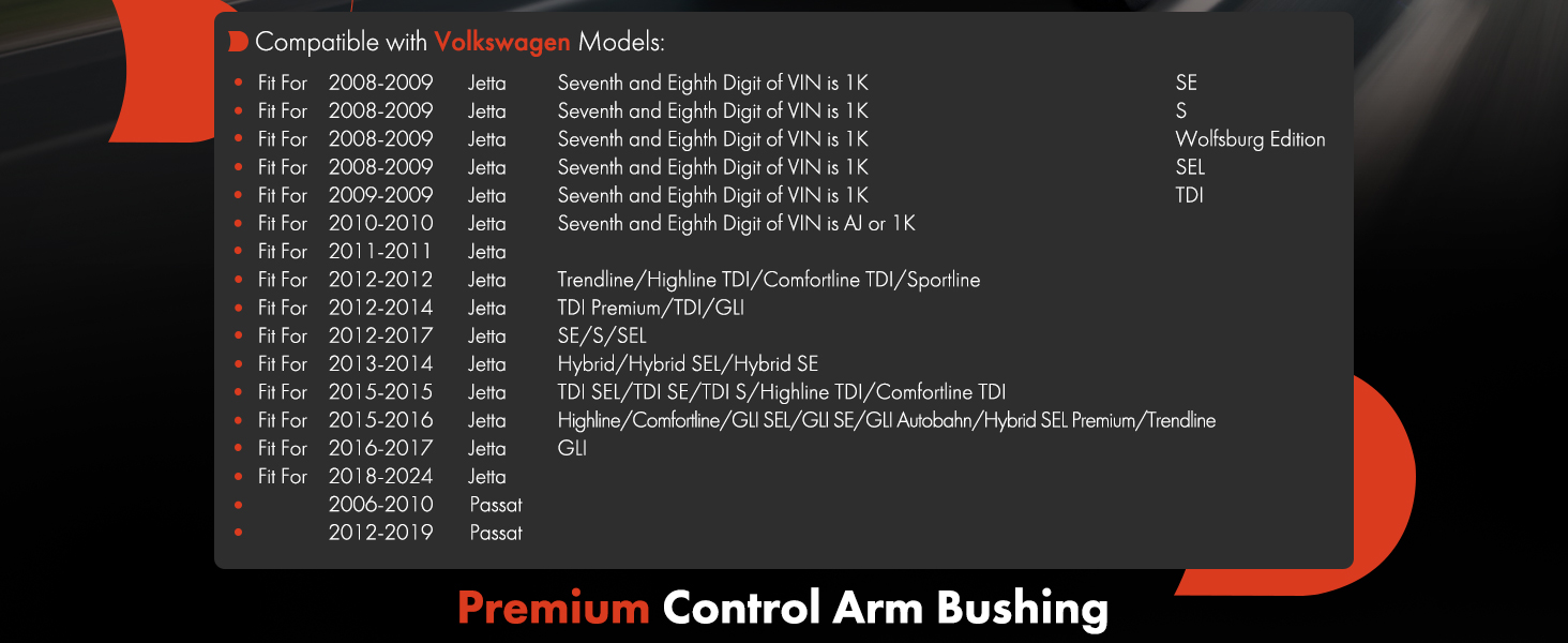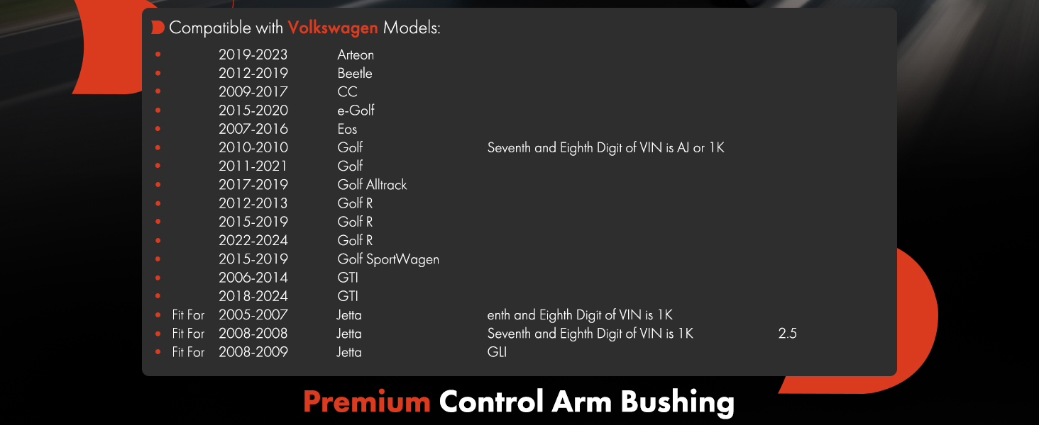 | • 2005-2007 Volkswagen Jetta | - Seventh and Eighth Digit of VIN is 1K |