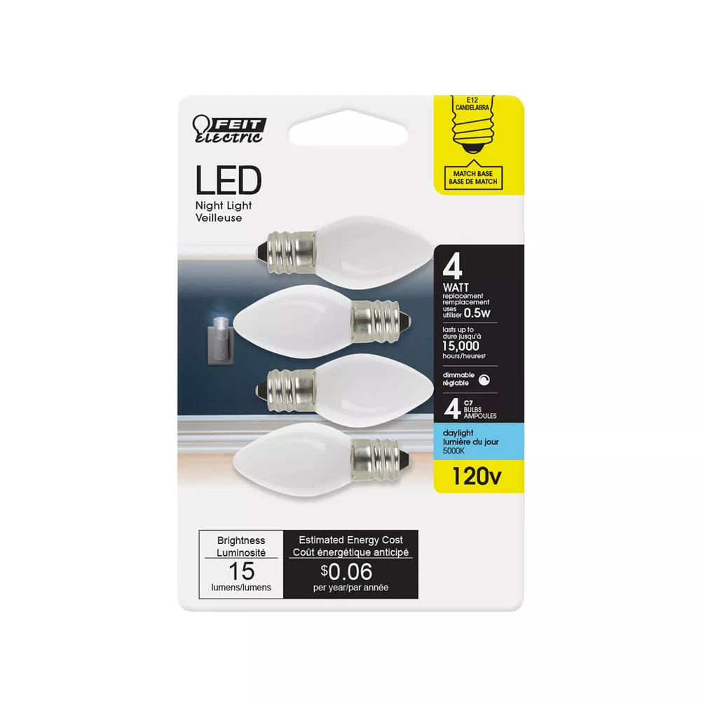 Feit Electric C7 E12 Candelabra LED Bulb LED Light Bulb, Set of 4