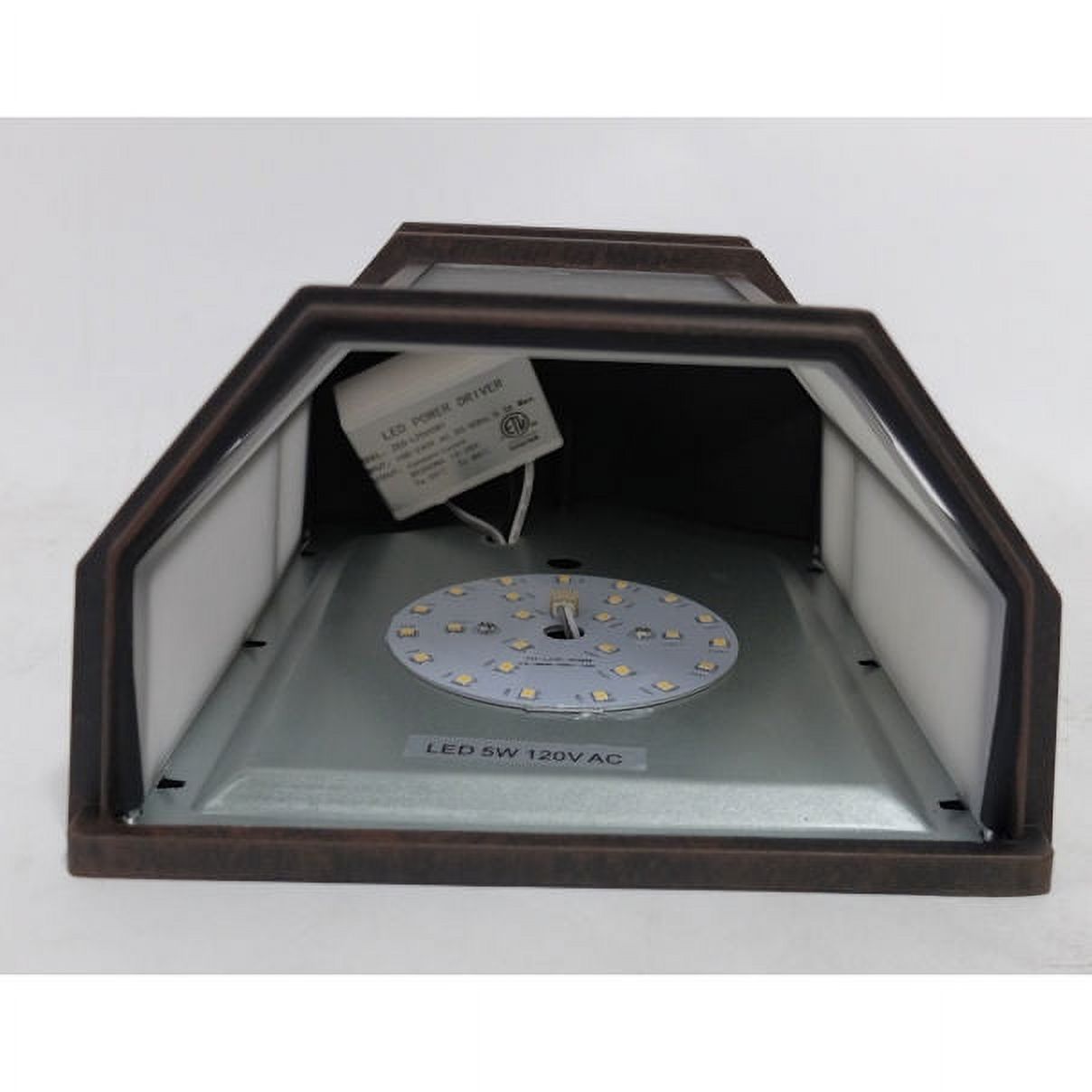 • This attractive outdoor wall light is crafted from weather resistant materials for long lasting durability. Includes 5 watt LED for energy savings and low maintenance.