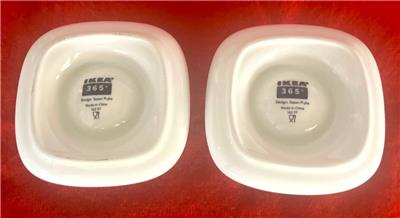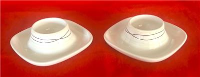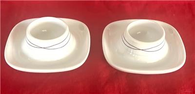 2 Ikea Square Egg Cups White w Stripes # 365 Design by : Susan Pryke Base 4" Diameter