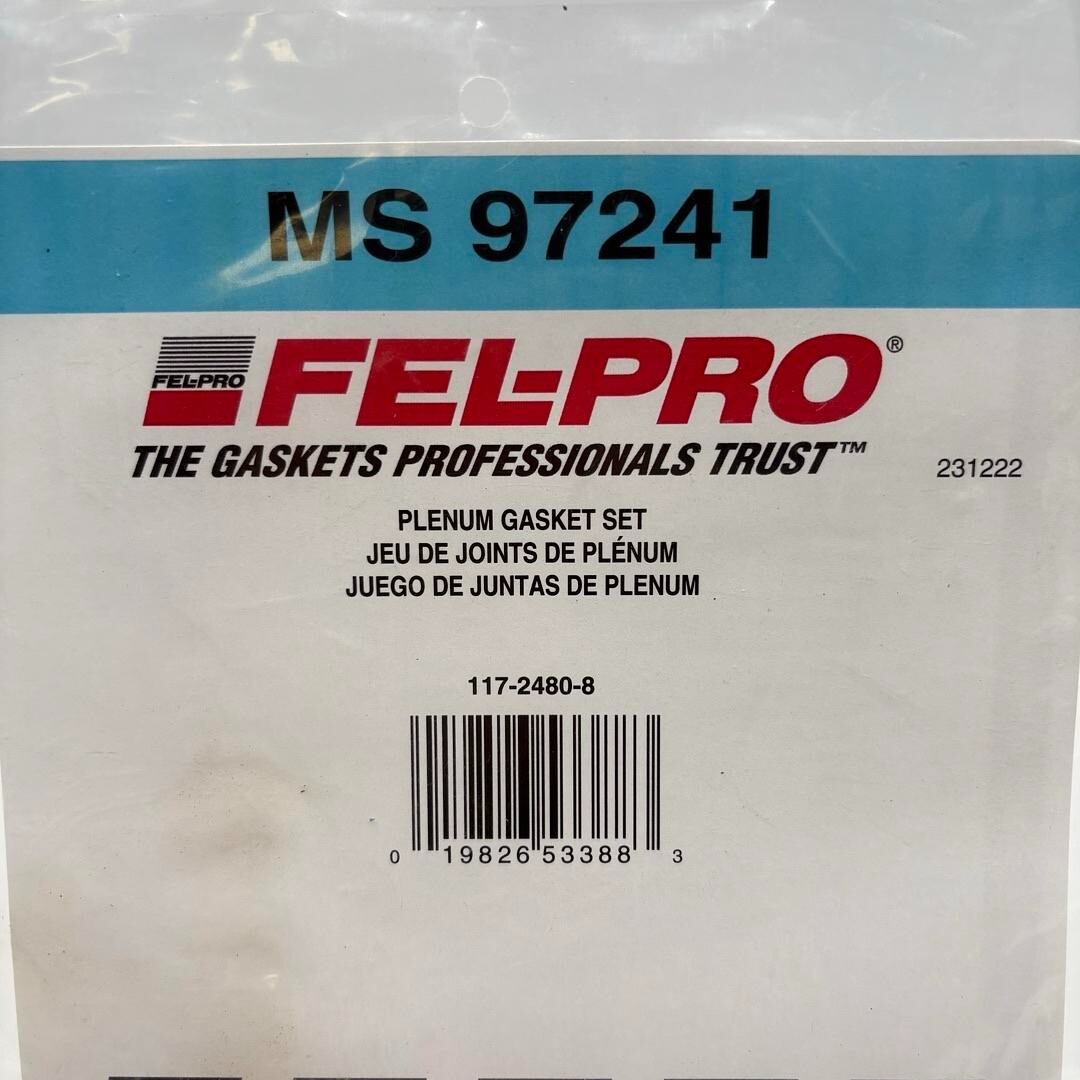 The FEL-PRO MS 97241 Plenum Gasket Set is a high-quality rubber gasket designed for the engine compartment of specific vehicles.