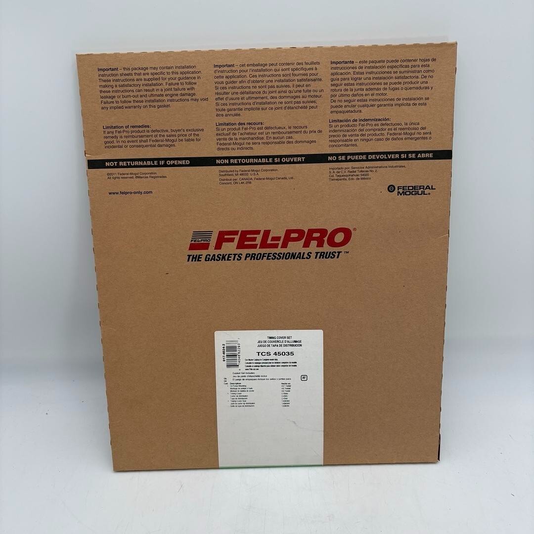 The FEL-PRO TCS 45035 Timing Cover Gasket Set is a high-quality gasket designed for the engine compartment of vehicles.