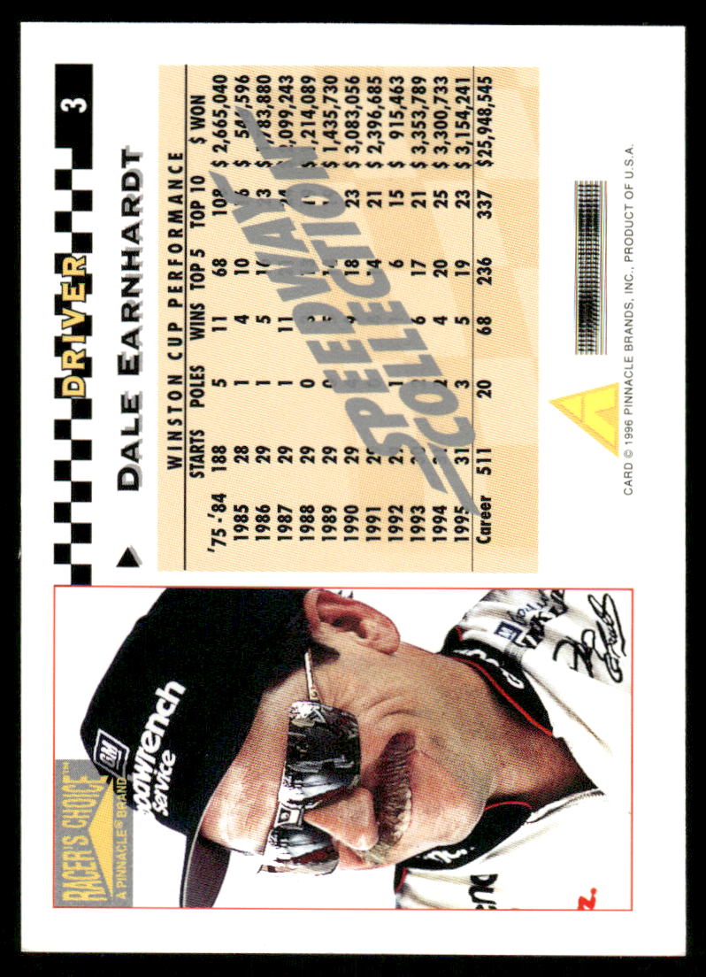 1996 Racer's Choice Speedway Collection #3 Dale Earnhardt - RAC